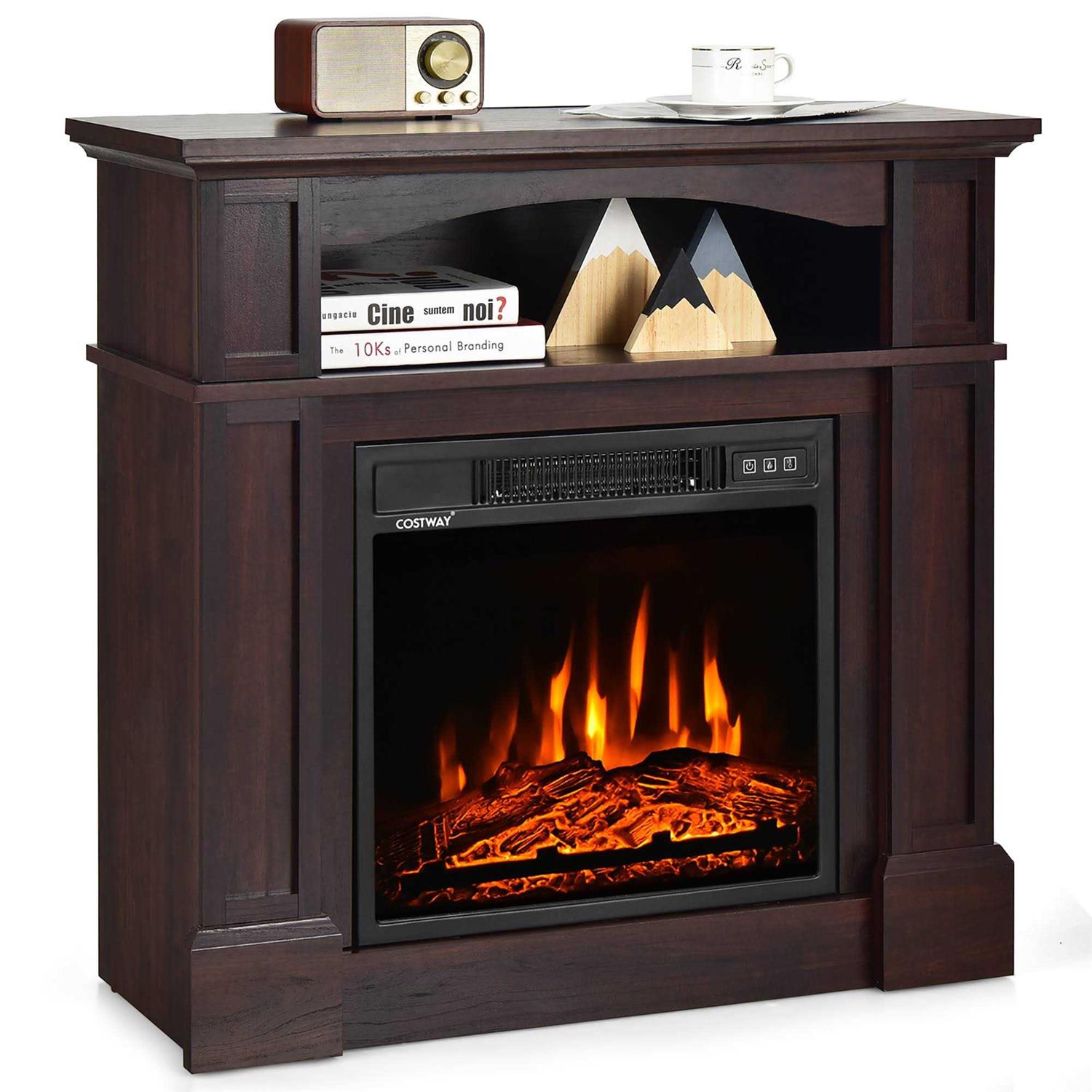 Costway 32 1400W Electric Fireplace Mantel TV Stand Space Heater W/ Shelf