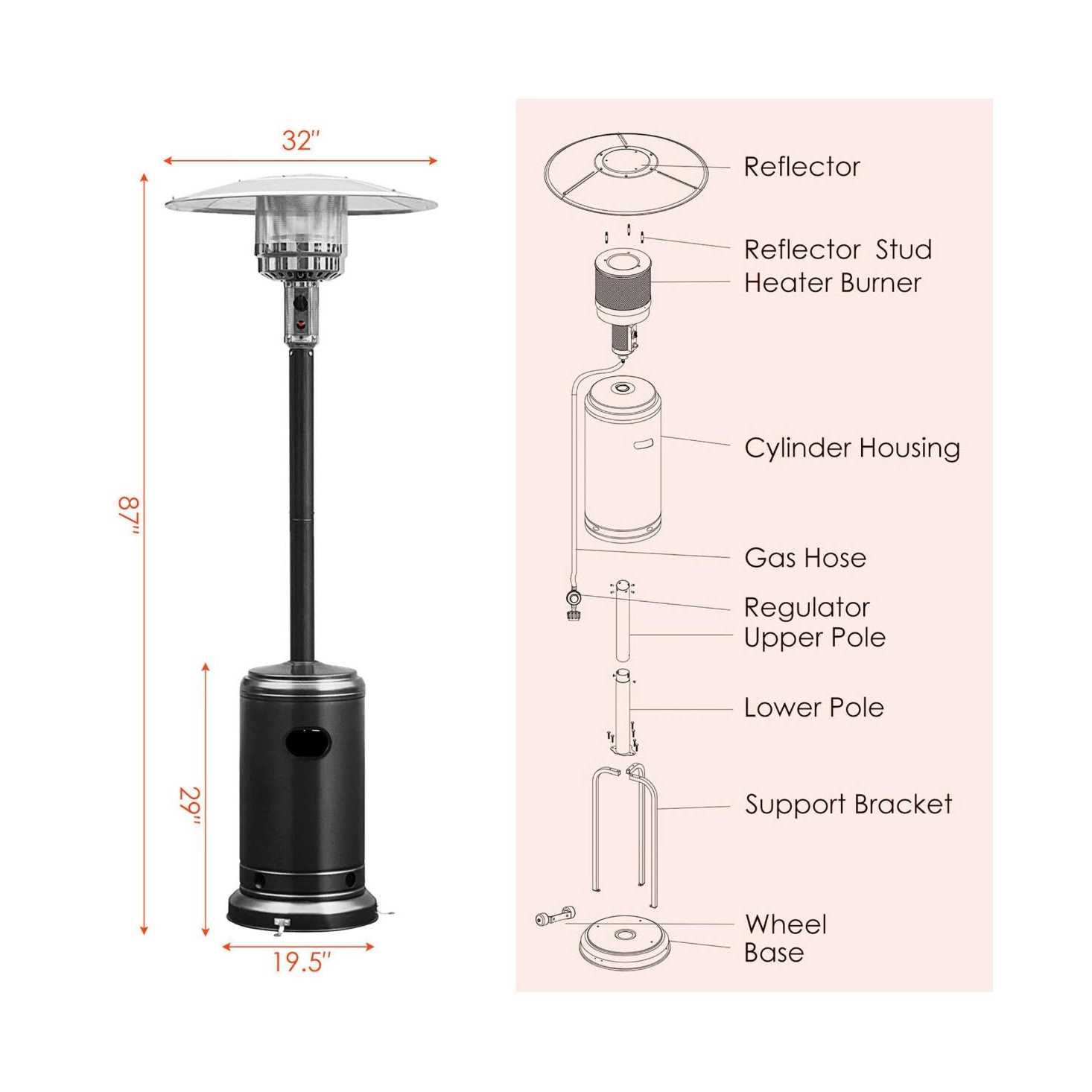 Costway BTU Patio Standing LP Gas Heater Steel Propane w/Wheels