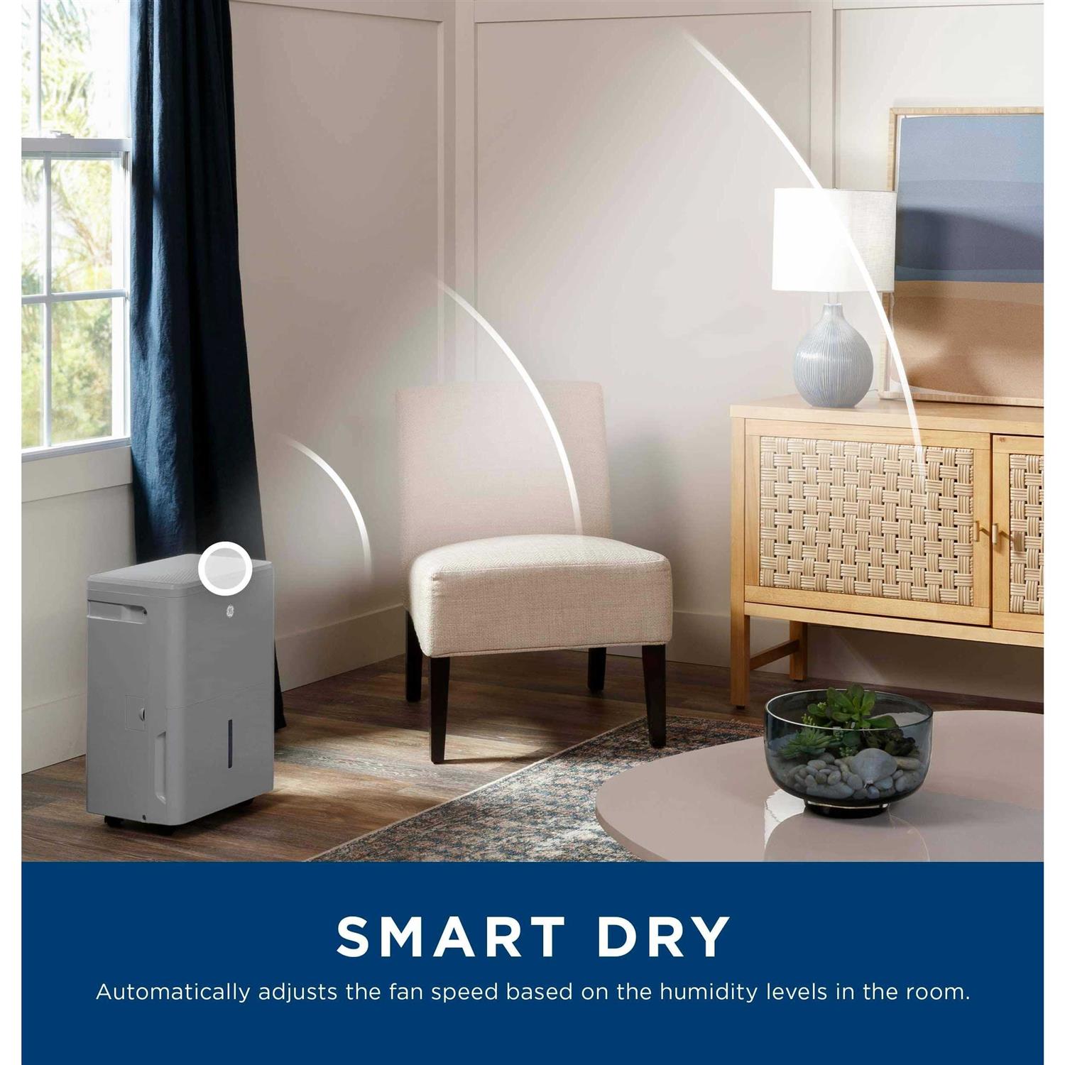 GE 50 Pint Energy Star Portable Dehumidifier with Smart Dry for Wet Spaces