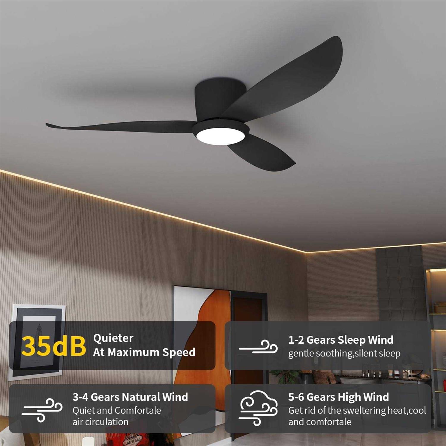 Low Profile Ceiling Mount Ceiling Lights Remote Control with 3 Reversible Blades 3CCT LED 6 Speed DC Motor