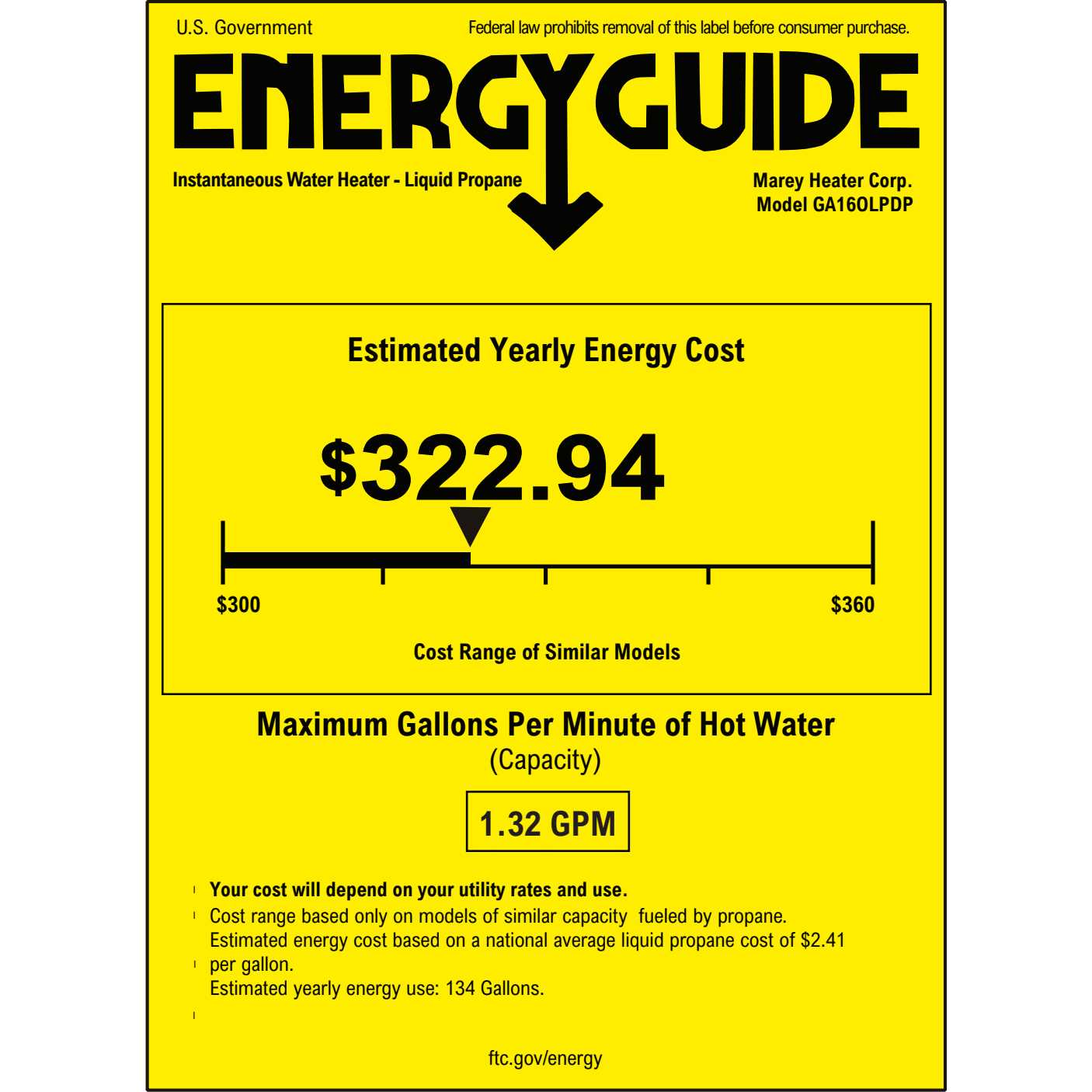 Marey GA10FLP 2.64 GPM 68240 BTUs Liquid Propane Gas Flow activated Tankless Water Heater