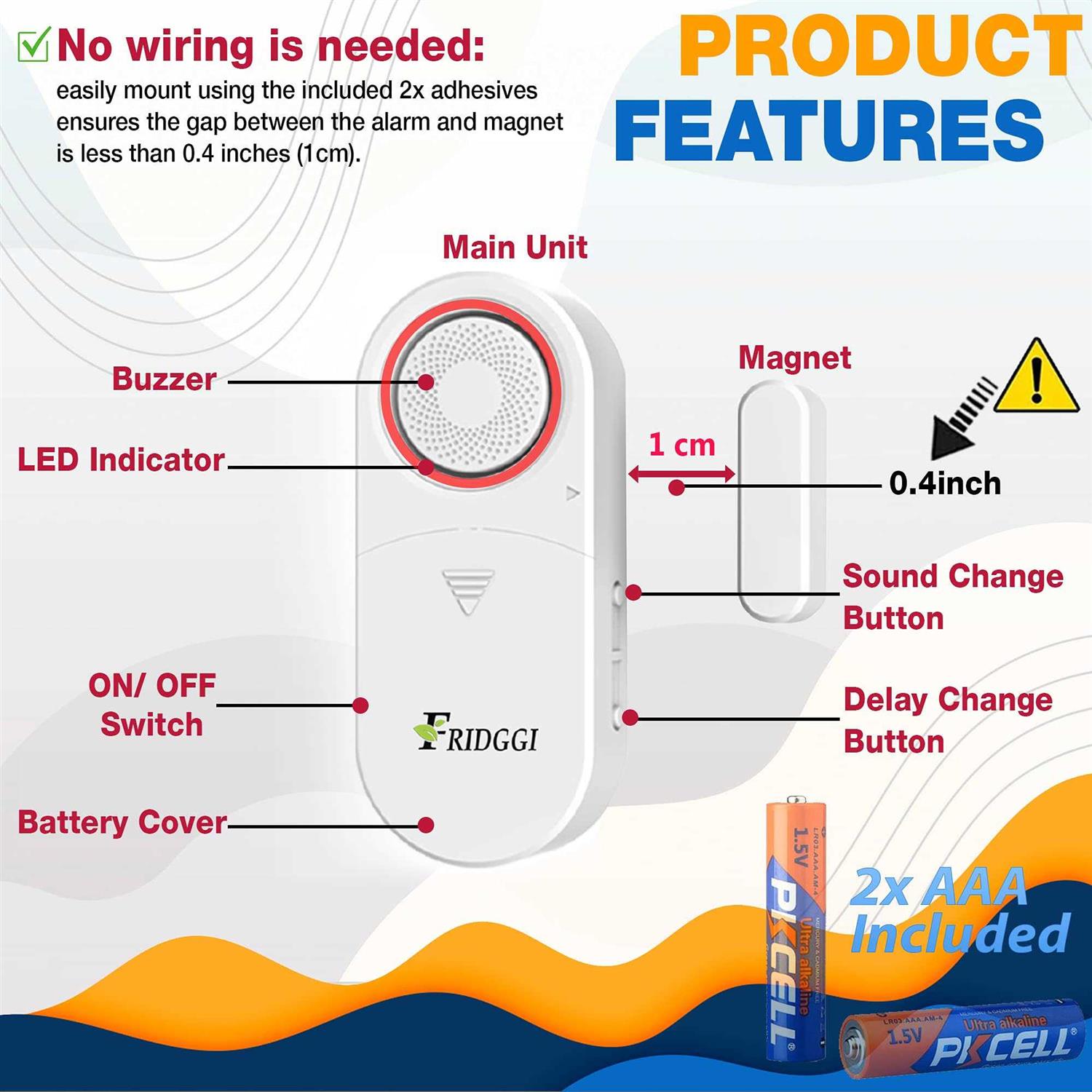 3in1 Alarm Door Ajar Alarm Door Chime with Delay 0/5/10/30/60 Seconds 2/5 Minutes