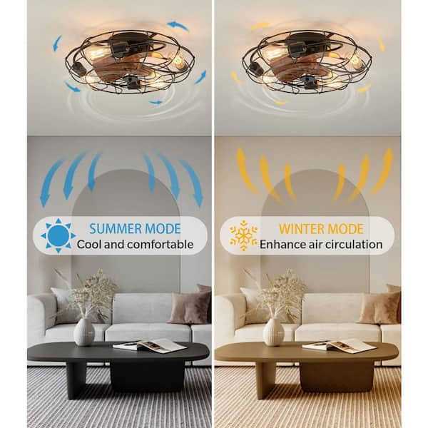 LED Indoor Ceiling Fan with Remote Control offers a better way to cool with Ceiling Fan and E26*4 Lights Combination. 6 speeds make it easy to maintain the perfect amount of airflow with remote control operation. Enclosed ceiling fan with light present a modern industrial style. The cool out looking design makes it a good home decoration. Due to no exposed blades, it’s the perfect addition to a kid’s room, a small kitchen, a dining room or a home office. Modern Ceiling Fans 2 in 1 Design. Modern design low profile ceiling fan with light to keep the home interior stylish and inspired Industrial Style, Simple and Stylish. The main body of the ceiling fan with lighting is made of black wavy iron frame, the fan blades are in wood grain color, and the lampshade uses iron technology Two Rotation Modes. Forward rotation in summer to lower the temperature to bring cool breeze and reverse rotation in winter to increase air circulation for more balanced room temperature High-Quality DC Motor. Silent and comfortable ceiling light with fan runs smoothly, with strong airflow and no noise Multi-speed & Sleep Timer. 6 speeds fan(with remote control) and sleep timer settings make it easy to maintain the ideal comfort level Perfect Home Decoration. Brighten your home beautifully and brightly with this modern ceiling fan and enjoy the fresh and healthy breeze. It is very suitable for living room, bedroom, kitchen, dining room Simple Design for Small Rooms. The 20in. ceiling fan with light is very suitable for living room, bedroom, kitchen, dining room Easy to Clean. The ceiling fans have removable blades that can be easily cleaned Easy to Install.