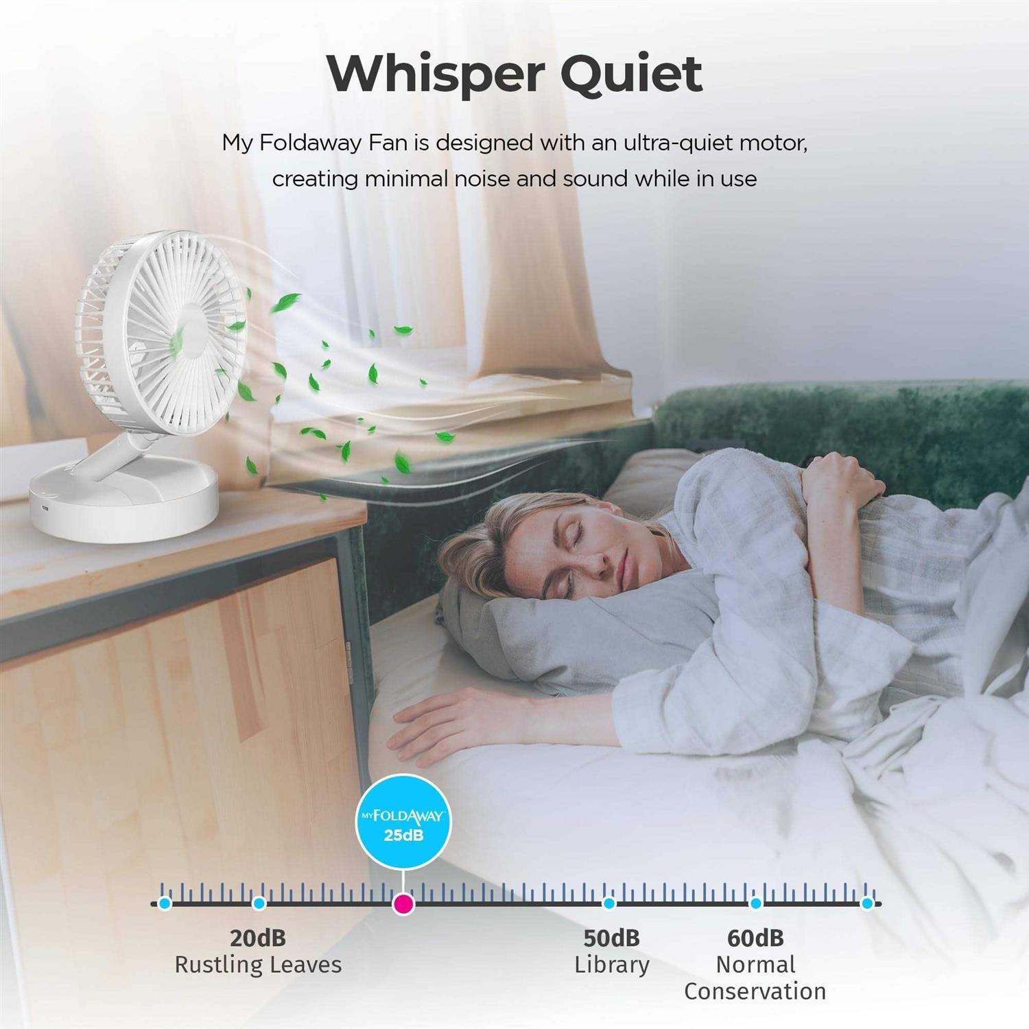 2 in 1 Floor and Table Fan: The My Foldaway Fan Folding Fan is the only fan you’ll need for your home, office, or vacation- This fan’s foldable design is ideal for home, office, and travel use while the rechargeable design makes it’s a perfect fit for use on the go or outdoors. Simply fold the fan and place on your desktop or bedside for a cool breeze or extend the fan to stand and cool down an entire room. Extendable Fan: The My Foldaway Fan features a telescopic neck and is extendable from 4” up to 12” providing multiple use options, making it ideal for desktops, bedsides, sofas, kitchens, living rooms, outdoors, cars, and more. Portable and Compact: My Foldaway Fan has a super lightweight finish weighing only 2 pounds and has a collapsible design, folding the fan within itself, and allowing for easy packing in suitcases and carryon bags. Wireless and Rechargeable: Use this fan outdoors or on the go with the wireless and rechargeable design. Simply charge the fan with the USB cable included and enjoy up to 10 hours of cool air. Long Battery Life: My Foldaway Fan features a rechargeable lithium battery, giving you up to 10 straight hours of use on a full charge, ensuring you will always have a fan ready to use when needed. Whisper Quiet: My Foldaway Fan is designed with an ultra-quiet motor, creating minimal noise and sound while in use, and allowing you to work, sleep, or relax with cool air, without any of the loud background noise or headaches. 2 Modes: Designed with 2 air settings – low and high – MyFoldaway Fan allows you to choose the amount of air to your preference. Simply hold the button for 3 seconds to change between modes. home, office, or vacation- This fan’s foldable design is ideal for home, office, and travel use while the rechargeable design makes it’s a perfect fit for use on the go or outdoors. Simply fold the fan and place on your desktop or bedside for a cool breeze or extend the fan to stand and cool down an entire room. Extendable Fan: The My Foldaway Fan features a telescopic neck and is extendable from 4” up to 40” providing multiple use options, making it ideal for desktops, bedsides, sofas, kitchens, living rooms, outdoors, cars, and more. Portable and Compact: My Foldaway Fan has a super lightweight finish weighing only 2 pounds and has a collapsible design, folding the fan within itself, and allowing for easy packing in suitcases and carryon bags. Wireless and Rechargeable: Use this fan outdoors or on the go with the wireless and rechargeable design. Simply charge the fan with the USB cable included and enjoy up to 10 hours of cool air. Long Battery Life: My Foldaway Fan features a rechargeable lithium battery, giving you up to 10 straight hours of use on a full charge, ensuring you will always have a fan ready to use when needed. Whisper Quiet: My Foldaway Fan is designed with an ultra-quiet motor, creating minimal noise and sound while in use, and allowing you to work, sleep, or relax with cool air, without any of the loud background noise or headaches. 3 Modes: The 3 interchangeable modes- Low, medium, and high- allow you to choose the amount of air to your preference. Simply hold the button for 3 seconds to change between modes. Versatile Fan: The My Foldaway Fan is the ideal fan for use on the go, in your home, at work, or even outdoors. Simply charge the fan, unfold it, and use anywhere you desire.