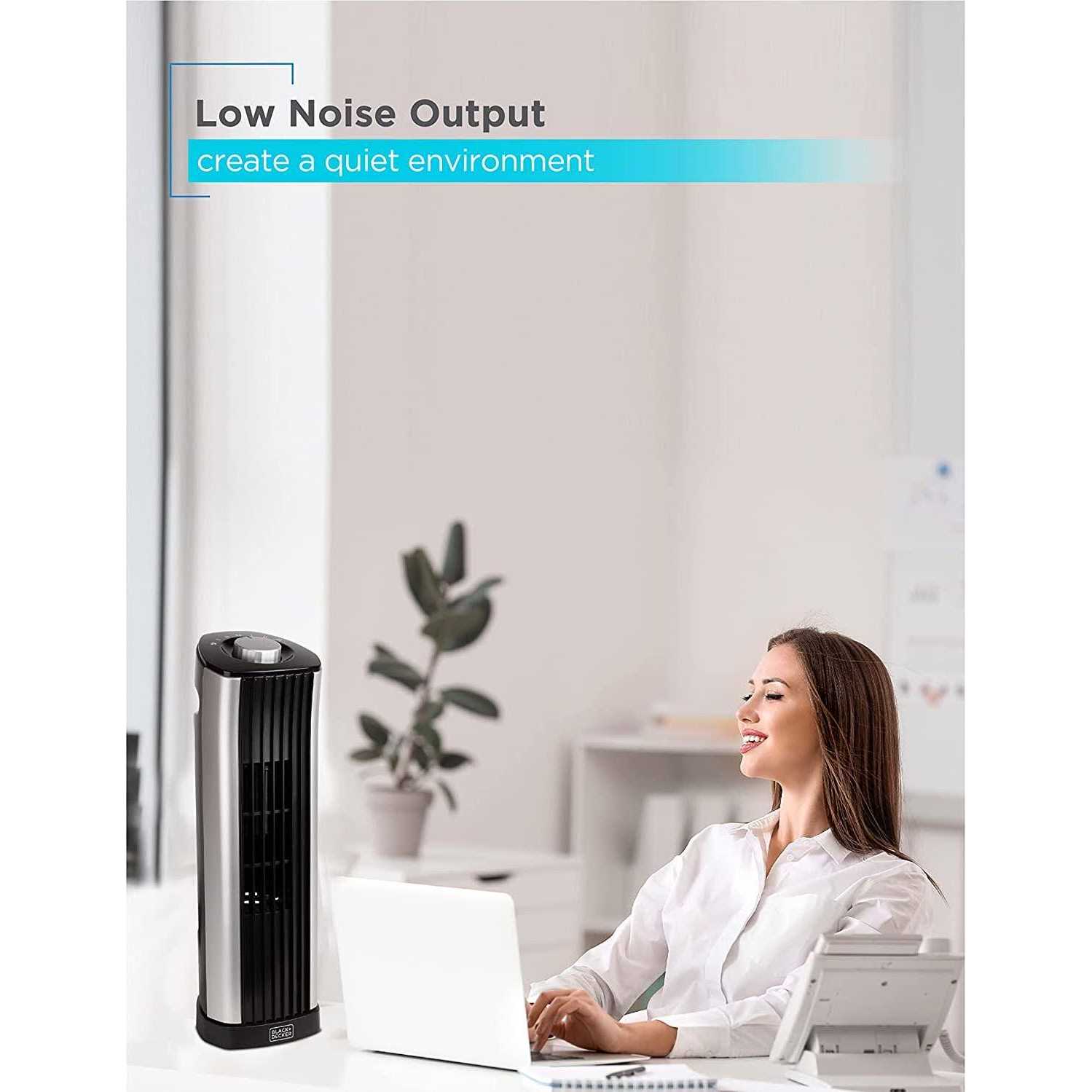 Mini Tower Fan is ideal for anywhere in the home, garage or office. The 90° oscillation function covers a larger area when necessary and there are 3 speed settings to get the right amount of air circulation. This oscillating standing fan is ETL certified for safety. Over the course of the past century, BLACK+DECKER has consistently provided innovative solutions for the average American. Today, BLACK+DECKER is a household name and one of the most recognized brands in the small domestic appliance category.