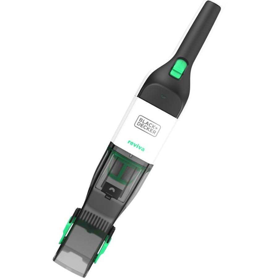 As part of the reviva range, the tool housing of the BLACK+DECKER dustbuster reviva Cordless Handheld Vacuum is made with Tritan Renew from Eastman 50% certified recycled material and contains an amount of recycled material equivalent to the weight of 15 16.9 fl-oz single-use plastic bottles.Spills are unpredictable, but youll be ready with the dustbuster 8V MAX reviva Cordless Hand Vacuum. Messes are easy to clean with the power and runtime needed to tidy up. Its high-performance motor provides up to 19 air watts of suction power, and it offers 11 minutes of runtime per charge. Easily remove the dustbin of the Cordless Hand Vacuum for swift and efficient emptying, so when the next mess happens, youre ready. It also comes equipped with a built-in flip-up brush for fine debris and easy access to hard-to-reach places.
