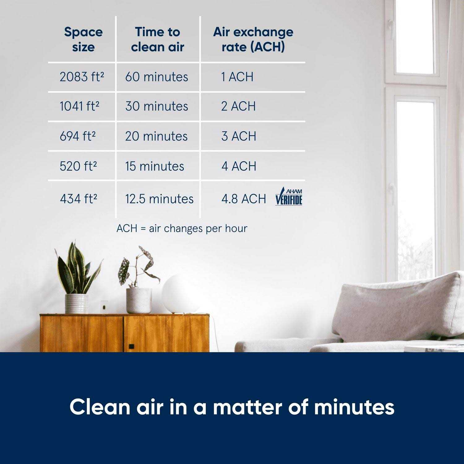 Resilient galvanized steel. Intelligent auto-adapting sensors with boosted smoke and odor removal. Plus, advanced app and voice control. Breathing is believing. classic-400-series from Henrik Lindgren on Vimeo. Optimal air for medium to large spacesFilters the air in a 434 ft space in about 12.5 min (4.8x an hour, based on AHAM recommended removal rate) or up to 2,083 ft in one hour on high speed to effectively lower particle levels and maintain a comfortable environment in medium to large spaces like primary bedrooms, living rooms and playrooms.