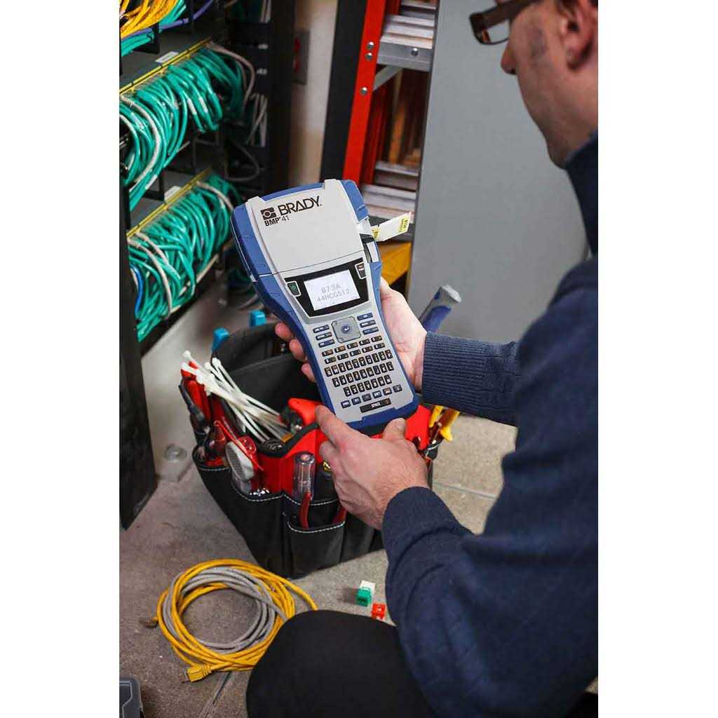 Brady Label printer kit includes printer, rechargeable battery pack, cartridge, USB cable, AC adapter, product CD, printer driver CD and quick start guide. It uses thermal transfer technique with 300 dpi resolution to print on 1-Inch wide polyester, polypropylene and vinyl labels. Printer has QWERTY keypad, graphics library, hot keys and menu functions that makes label design simple and quick. It has large LCD back light display to provide clear visibility. Printer has rubber bumpers to provide optimal protection and security against impact. It has ergonomic, center-balanced, printer with grab-and-go ridged grip for solid handling. It is used for voice/data communication, product and panel identification. It is designed for facility, safety and lean labeling. It can be easily integrated to PC via USB cable.