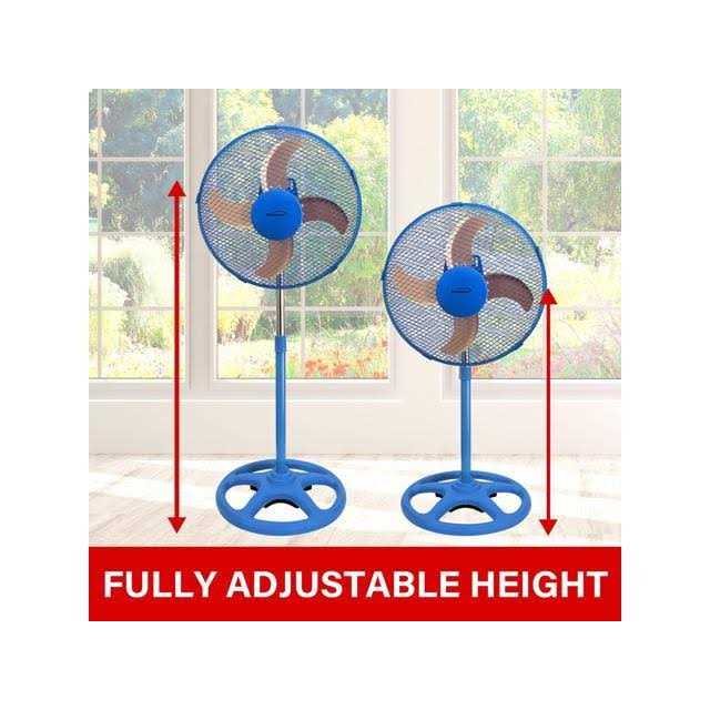 Use the 70 watt Brentwood 3-Speed 12 inch Oscillating Stand Fan to produce intense cooling. Wide oscillation allows full room circulation saving you energy and money. Choose between 3 levels of quiet, powerful speeds. Direct air flow using the adjustable height and pivoting head. Easily move the lightweight fan from room to room with the integrated carry handle. Features a child safe mesh metal grill. Stylish jet black fan complements modern day home and office decor.