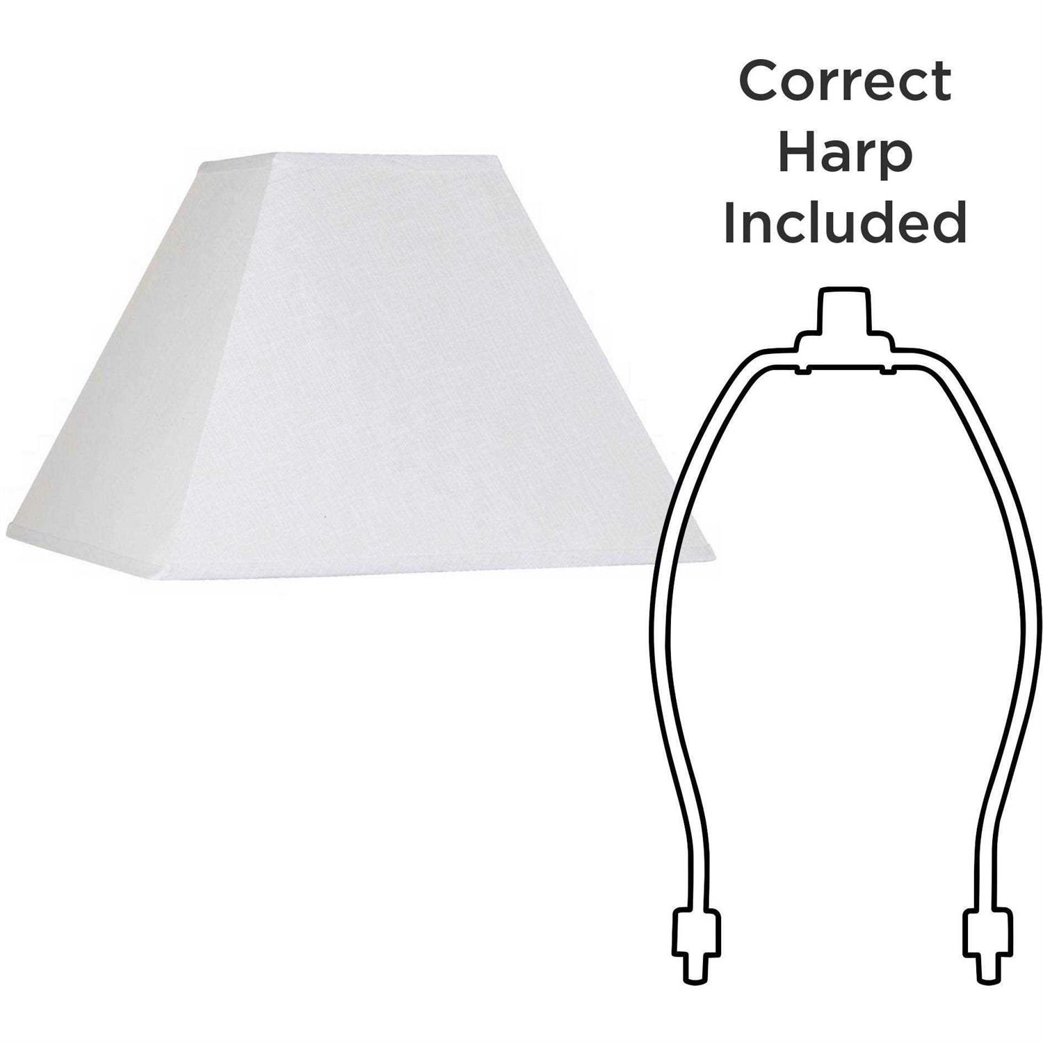 A clean, contemporary look in white linen. This square shade does not have a lining, it features hardback construction instead. The correct size harp is included free with this shade. White linen hardback shade. Chrome spider fitting. 7″ wide at the top. 17″ wide at the bottom. 12″ high. 13″ on the slant. Features: White linen hardback shade. Chrome spider fitting. 7″ wide at the top. 17″ wide at the bottom. 12″ high.