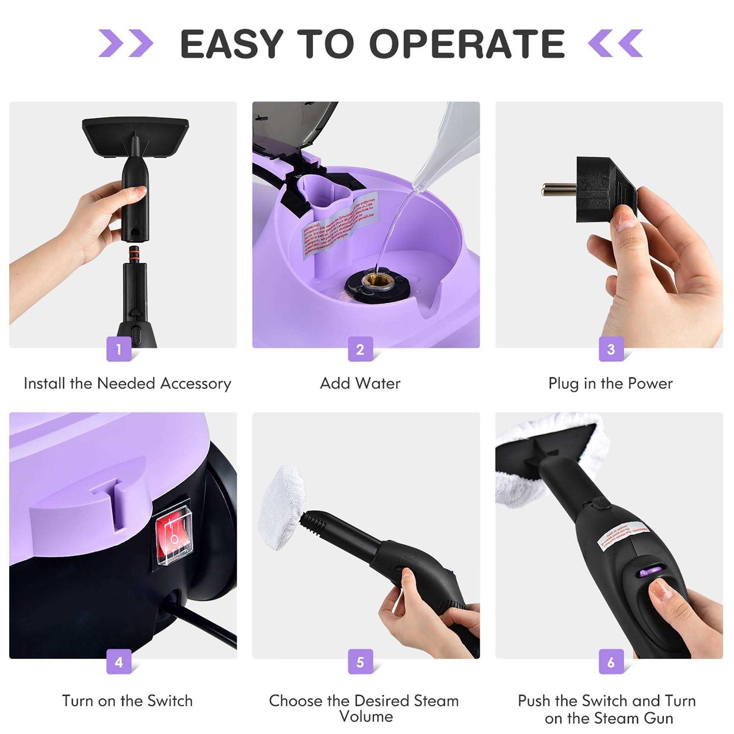 This is our reliable steam cleaner with high efficiency and deep cleaning, which can provide you with a comprehensive cleaning solution. Most significantly, it uses high temperature and steam pressure to clean floors, windows, appliances. NO chemical agents used with zero injury protection. Adjustable steam control is designed to meet your specific needs in different scenarios. The 1.5 l large-capacity water tank can be heated to 226°F in 5-6 minutes, and the maximum operating time is 45 minutes. The child lock and the automatic power off ensures your children and pets are safe. 19 versatile accessories allow you to clean, disinfect, sterilize and remove mites in your home, office and car. Order yourself a one and enjoy the benefits.