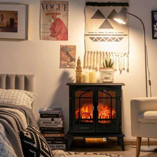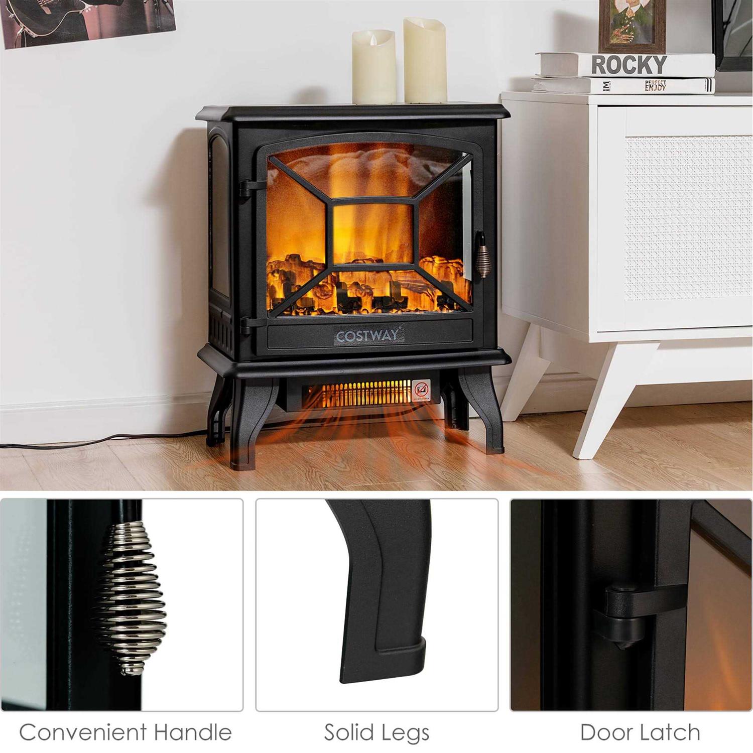 Costway Freestanding Electric Fireplace Heater Stove W/ Realistic Flame effect 1400W