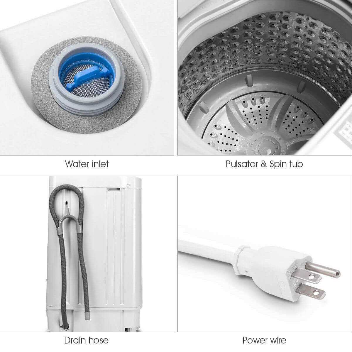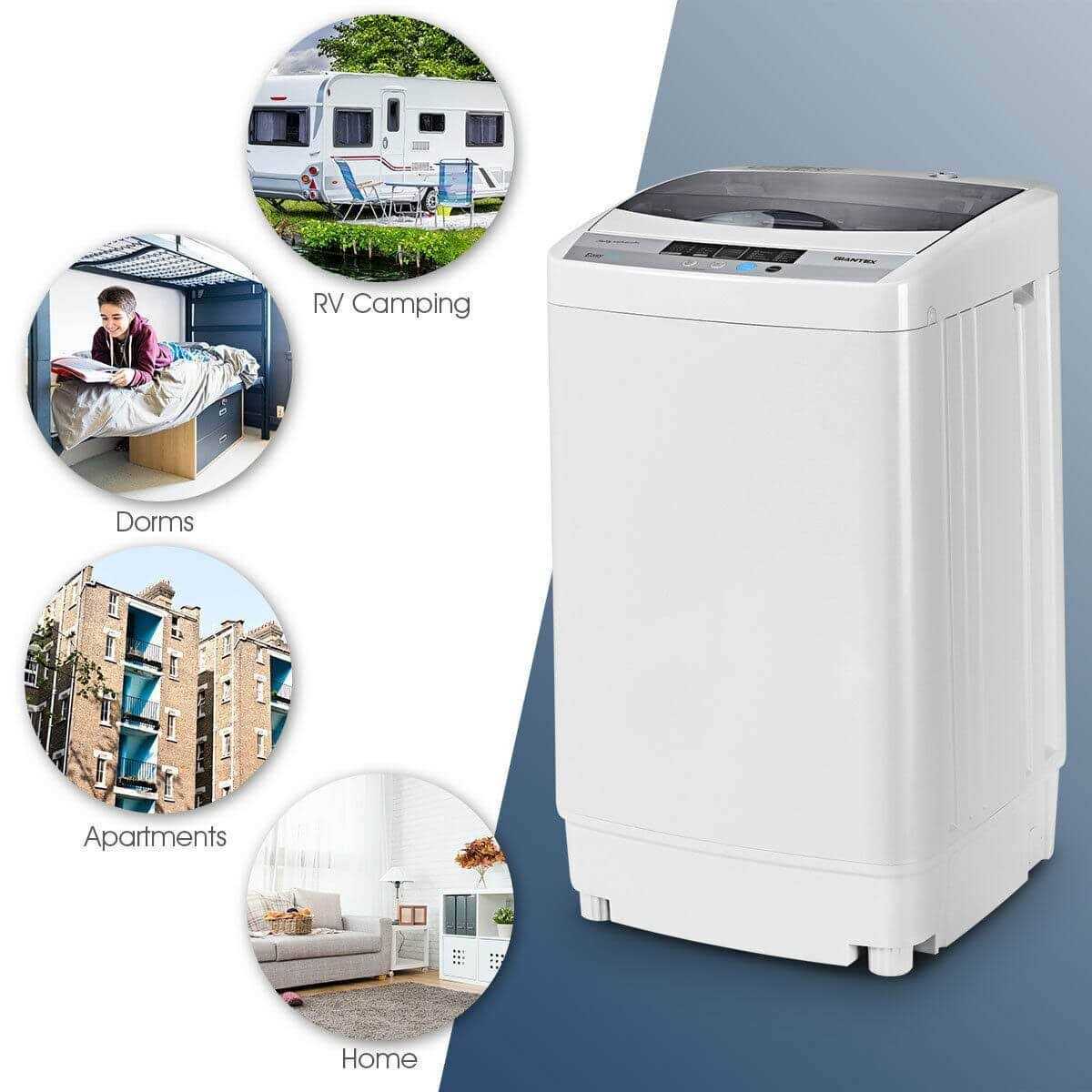 This portable compact washing machine which only needs a small space to store is a perfect solution for compact living. Equipped with a variety of convenience features, it includes a see-through lid, electronic controls with LED display, stainless steel inner tub and 2 water pipes. The max weight capacity of this washing machine is very suitable for you doing medium weight laundry. In addition, this machine features a built in drain pump and a drain pipe which allow you to easily drain out dirty water. With this laundry washing machine, you will find washing is an easy job.