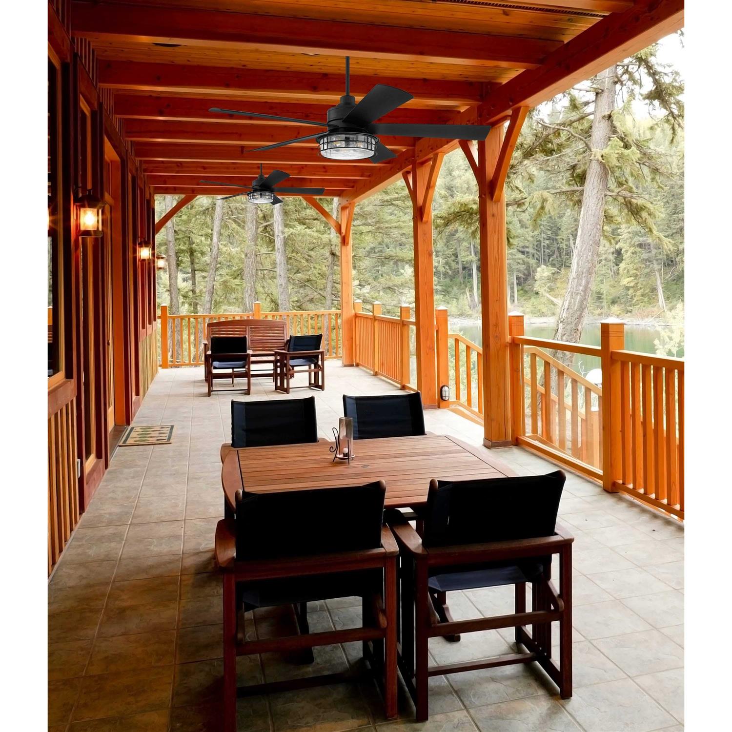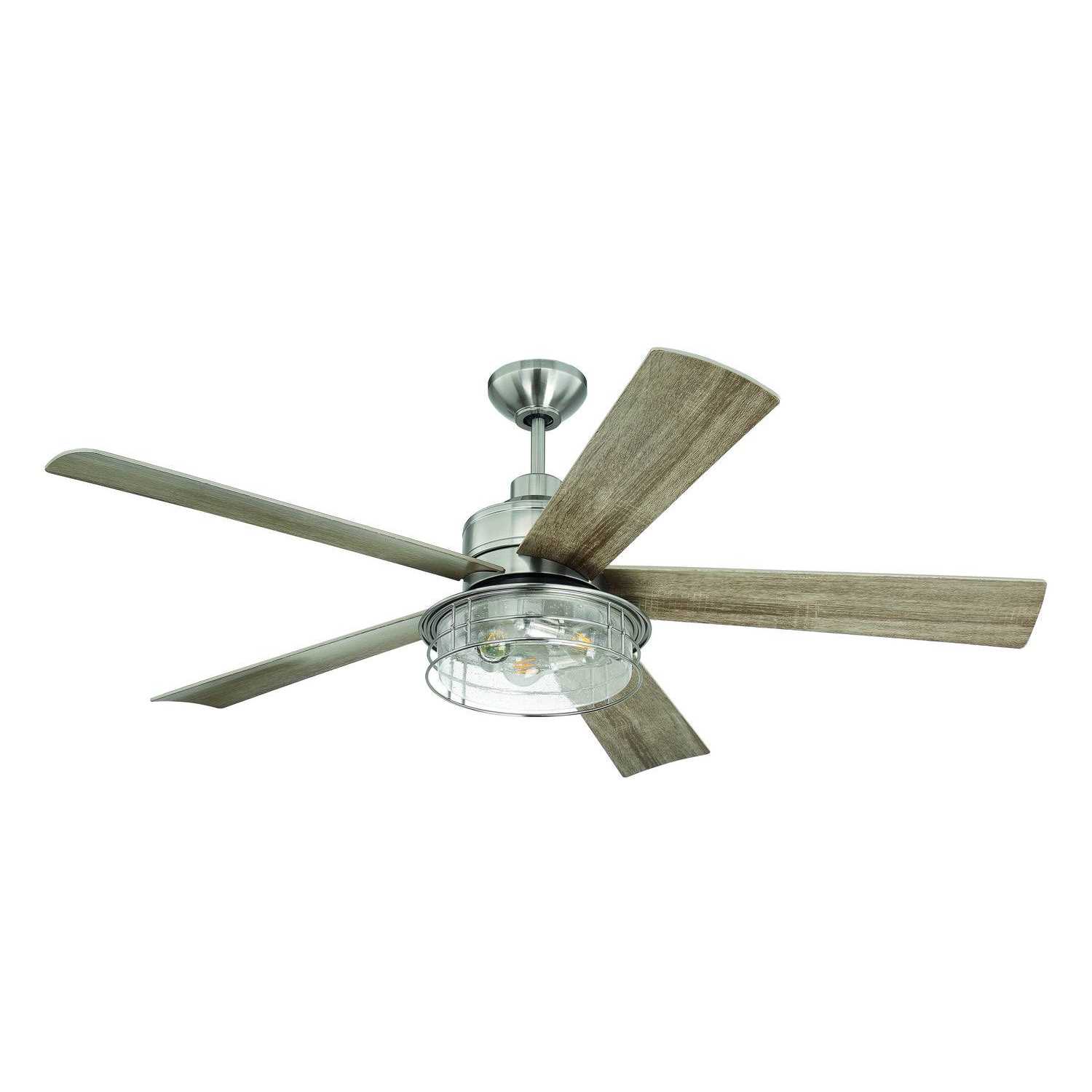 The Garrick combines the allure of vintage industrial lighting with updated transitional styling. Updated features include energy efficient dimmable 3-light integrated caged seeded glass light with included LED bulbs, weather resistant ABS blades as well as handheld and wall remote controls for convenience. Ceiling fans can provide both cool and warm air for your home. In the summer operate the ceiling fan in a counterclockwise direction to send cool air down to the floor, in the winter operate the ceiling fan in a clockwise direction at a low speed to push warm air down. A ceiling fan is great way to help evenly distribute and circulate the air that’s in the room and cool your home more efficiently.