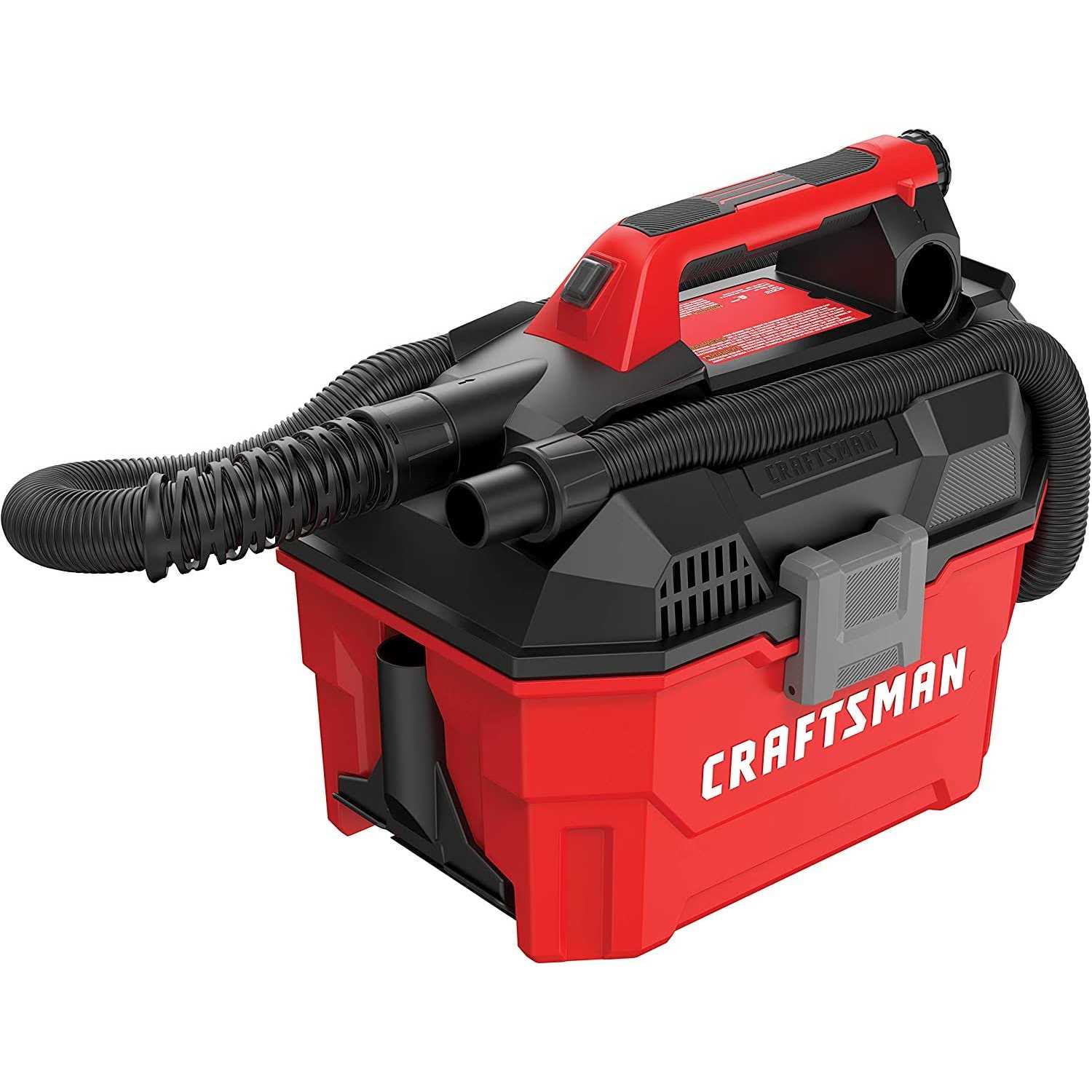 Part of the V20 cordless system. Portable 2-Gallon tank allows for wet and dry debris cleanup. Powerful motor provides 35 cfm’s of suction power for picking up debris. Hepa rated filter traps 99.7% of dust and allergens For efficiency and health safety. 7 ft. 8in. Hose allows for extended reach and flexibility in application. This CRAFTSMAN V20 20V max* cordless 2-gallon vacuum is portable for all of your wet and dry cleanup tasks at hand. The powerful 35 CFM motor provides the suction power needed to cleanup wood debris screws and wet messes. Fitted with a HEPA grade filter This vacuum will capture 99.7% of all dust and allergens. The portability and extended hose reach hose make cleaning up quick and easy to do. On board accessory and hose storage Helps keep everything in one place.