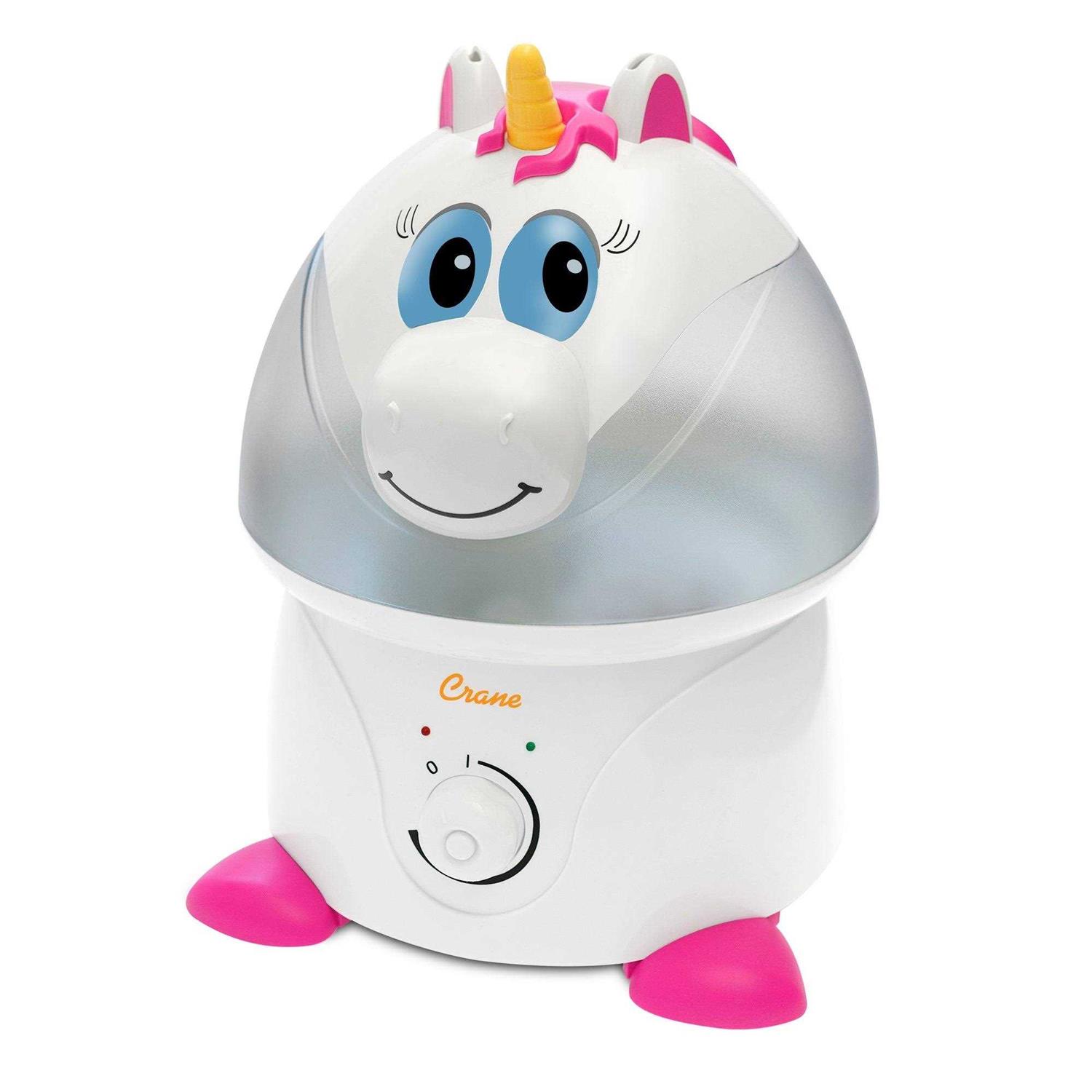 Featuring an adorable child friendly animal design, the BPA-free Crane Ultrasonic Cool Mist Humidifier provides up to 24 hours of moisture on medium setting from its removable one gallon water tank. Suitable for rooms up to 250 square feet in size this compact unit is energy efficient and uses ultrasonic technology to add soothing moisture to the air. Crane’s cool mist humidifier provides a non-medicated relief for dry cough nasal congestion and cold and flu symptoms. Crane humidifiers are a great gift for baby showers birthdays and holiday season. This humidifier does not require a filter to operate.