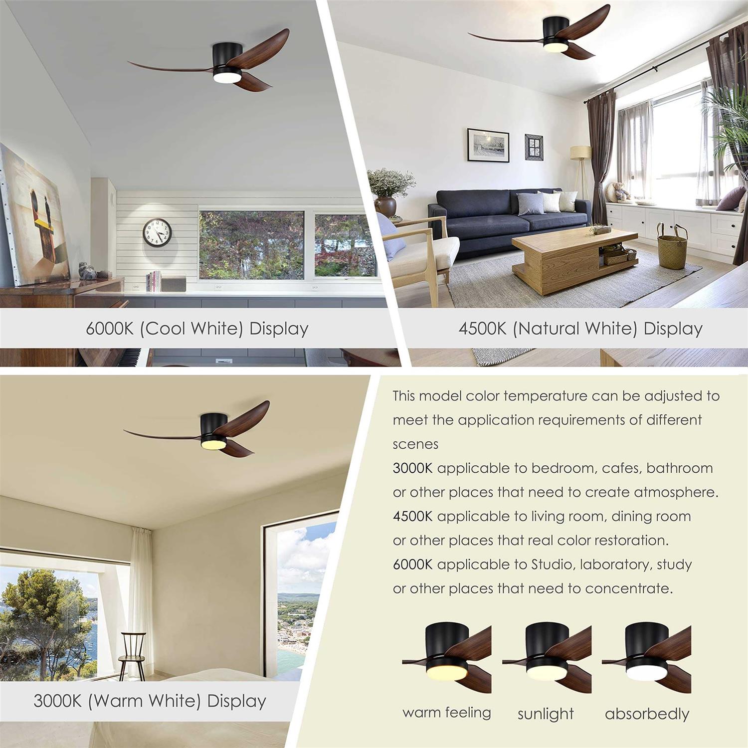 【Easy Control】Control The Ceiling Fan By Remote Control With 6 Different Speed Options. Adjust The Color Temperature Of The Light With A Timer. Control The Light And Fan Independently. 【Modern Fan Light】This Beautifully Designed Ceiling Fan Light Comes With A Bright LED Light Kit That Can Be Adjusted To 3 Different Colors, Providing Different Tones Of Light To Illuminate Your Bedroom. 【Stylish Appearance】Our Ceiling Fan With Light Features A Simple And Elegant Design With Sturdy 3-blade ABS Blades That Add A Touch Of Beauty To Its Shape. The High-transparency Acrylic Shade Provides Soft, Flicker-free Lighting. 【Quiet Reverse DC Motor】This Ceiling Fan Is Well-made, Sturdy And Durable, It Features A Reverse DC Motor That Saves 20% Energy And Runs Quietly For Year-round Use. 【Indoor Use】This 50-inch Ceiling Fan Is Perfect For Indoor Use In Spaces Ranging From 100-200 Square Feet, Making It Ideal For Restaurants, Farmhouses, Bars, Kitchens, Dining Rooms, Bedrooms, Living Rooms, And Hallways. p 1. Adjustable three-color light:Three kinds of color light can be switched such as cold light, natural light, warm light, and the light intensity can be adjusted. – 2. Remote control, it can be controlled freely through the handle in the house, which is simple and convenient. – 3. Low noise: Turn on the fan, only 25 decibels, giving you a high-quality sleep. – 4. Simple installation: According to the instruction manual, the assembly can be completed in ten minutes after unpacking. – 5. Energy-saving DC motor: The power of DC motor is only 32W. It can save you electricity bills. /p