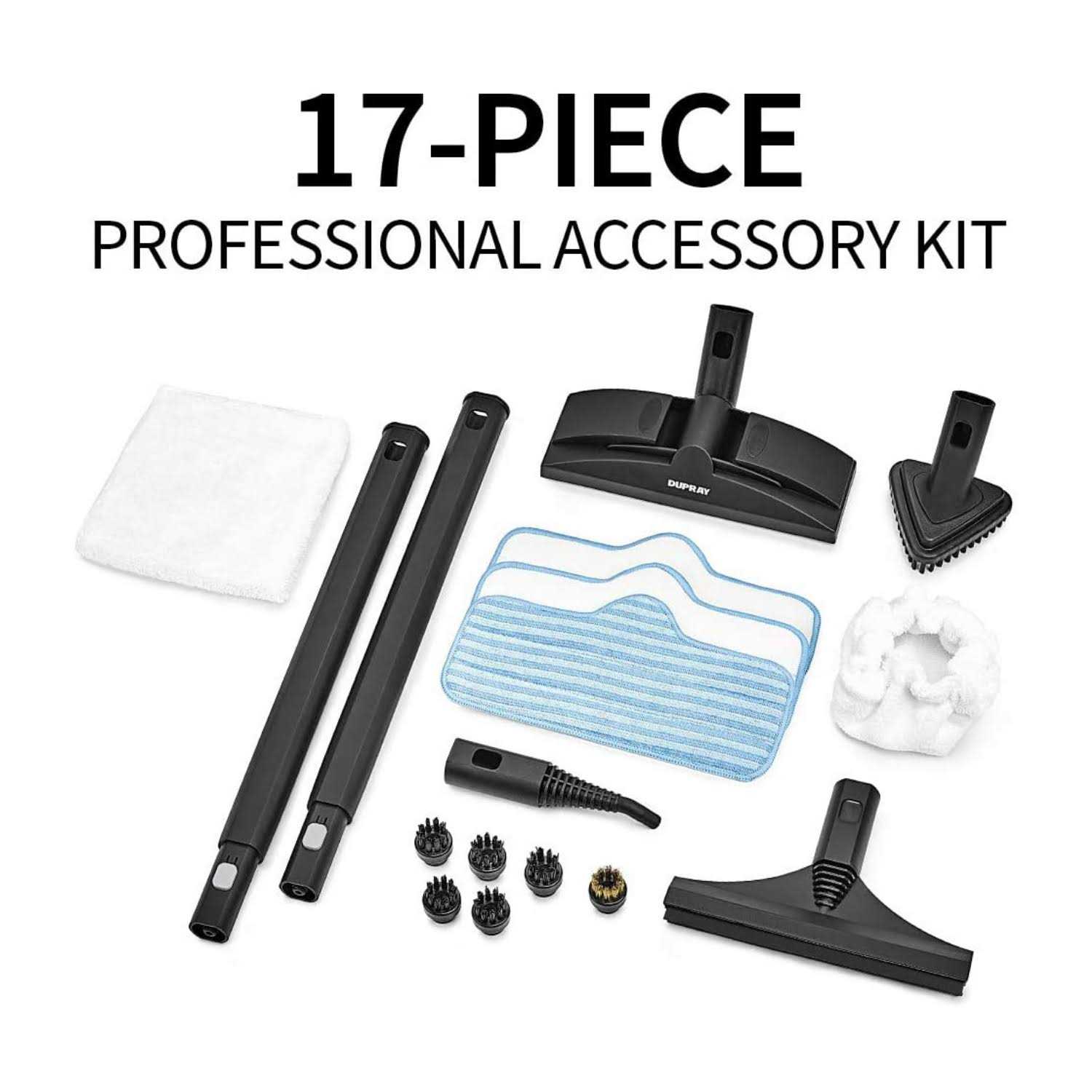 The NEAT steam cleaner is an efficient, ultra-reliable do-it-all cleaning and sanitation solution. Designed for performance, ease of use and durability, this steam cleaner delivers the cleaning power of much larger professional units. It can easily remove dirt, grease, and stains while killing 99.9% of bacteria, viruses, pathogens, bedbugs, mold and other undesirables from any type of floors, furniture, toys, kitchen appliances, car interiors, grout and tiles, bathrooms and more. Give your home a deep clean and experience perfect results with the DUPRAY NEAT steam cleaner.
