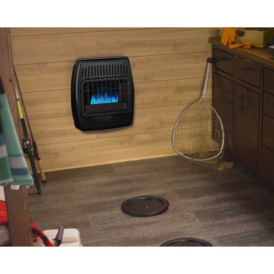 Dyna-Glo wall heaters are the ideal choice for safe, indoor supplemental heating. This state-of-the-art vent free technology does not require a flue or chimney. These heaters are great for use in your home, cabin, or garage. Since these heaters do not require electricity to operate, they make an excellent choice for everyday heating, and emergency situations when the power goes out. Using blue flame heating technology, heat is distributed similar to your central home heating system. This blue flame wall heater burns with 99.9% efficiency, and operates on natural gas only. Check your local regulations on installation restrictions and requirements. Operating heater above elevations of 4,500 feet could cause pilot outage.
