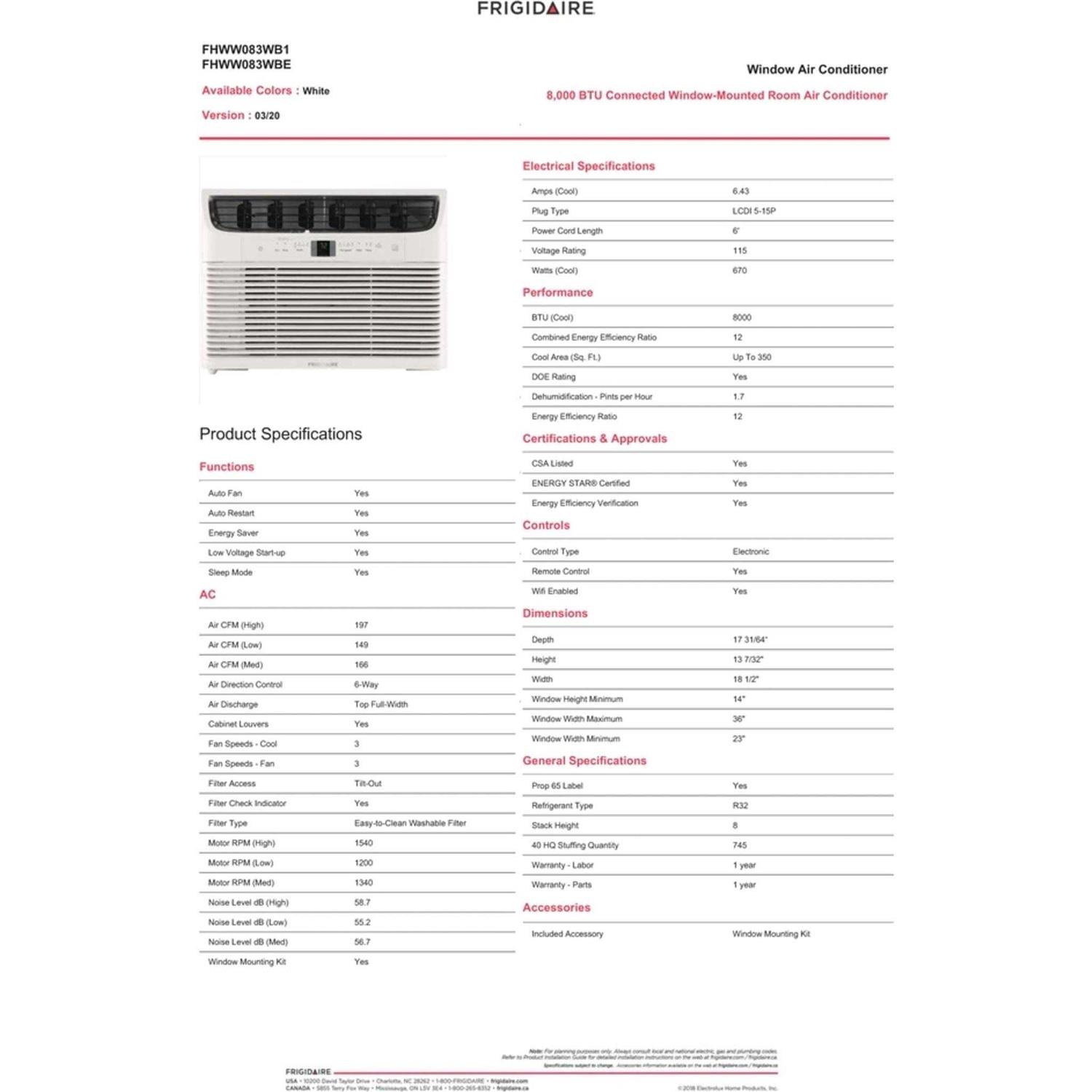 Frigidaire FHWW083WB1 Window Air Conditioner