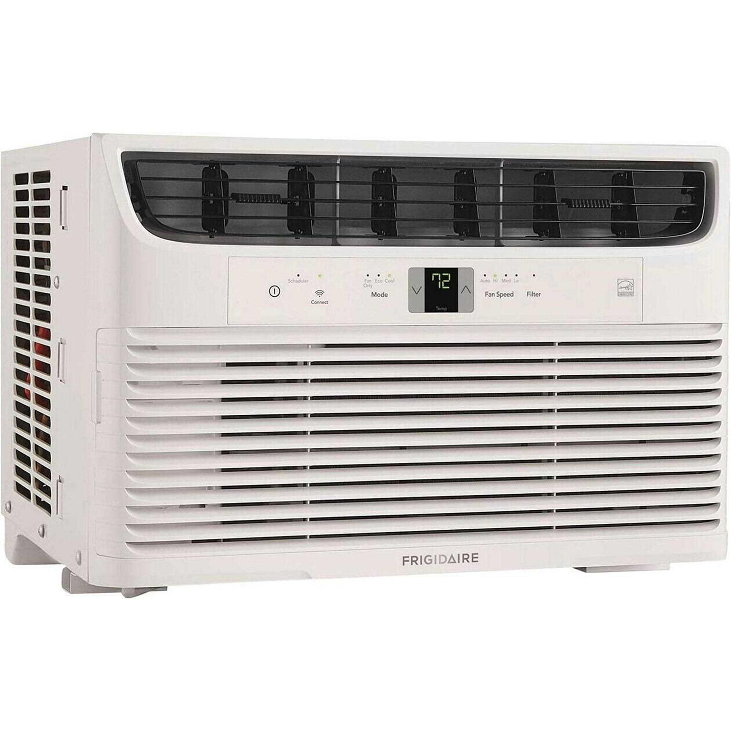 The Frigidaire 8,000 Window-Mounted Room Air Conditioner is designed to cool up to 350 sq. ft. and keep large rooms comfortable. Features 3 different fan speeds for cooling. Six-way air direction evenly distributes air throughout the room. Ready Select Controls allow you to select options at the touch of a button, while a remote control allows you to precisely control the temperature from across the room.