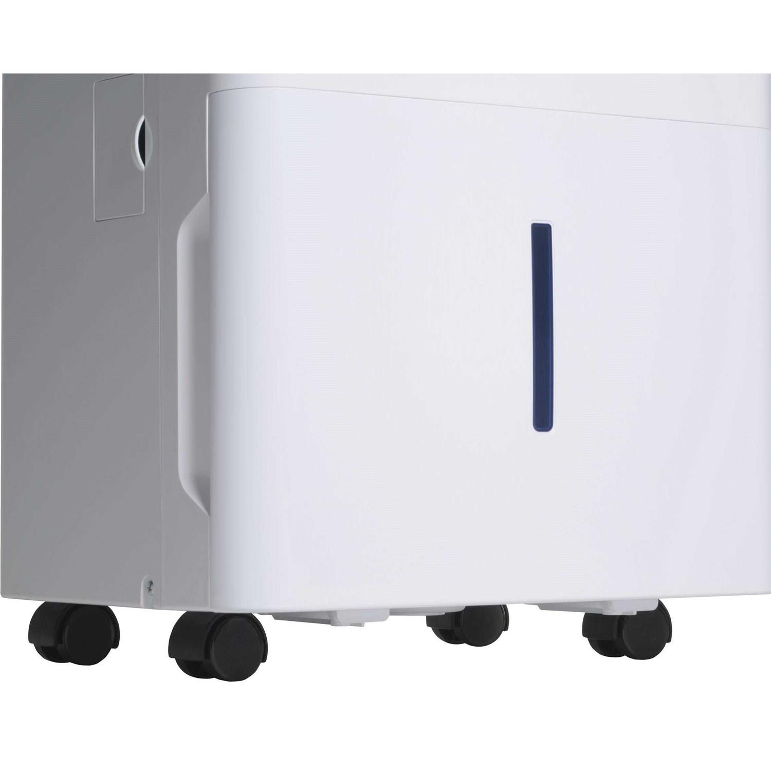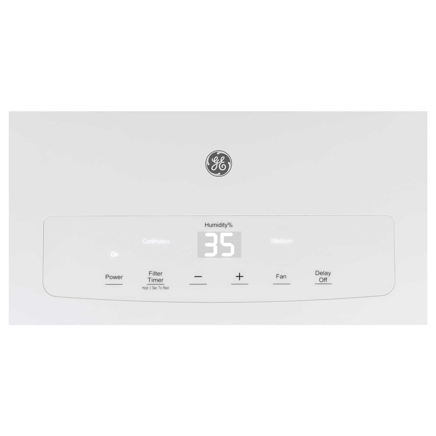 GE Appliances dehumidifiers are designed to effectively remove excessive moisture for various dampness levels, offering optimal home comfort for you and your family. The GE 20 pint Portable Dehumidifier removes up to 20 pints of water from the air every 24 hours. This model is ideal for damp room conditions, anywhere in the home, bedroom, basement or garage. An empty bucket 10-second alarm sounds when the dehumidifier bucket is full or missing, letting you know it’s time to empty or install it. Continuously drain water from your unit with a convenient dehumidifier drain hose connection, eliminating the need to empty the bucket. The soft touch control panel and LED digital controls on this GE dehumidifier let you clearly see and manage your settings. This model offers 3 fan speeds to choose from, auto defrost control, and a 2- or 4- hour off timer, while pocket handles and easy roll hidden wheels make it easy to move from one location to another.