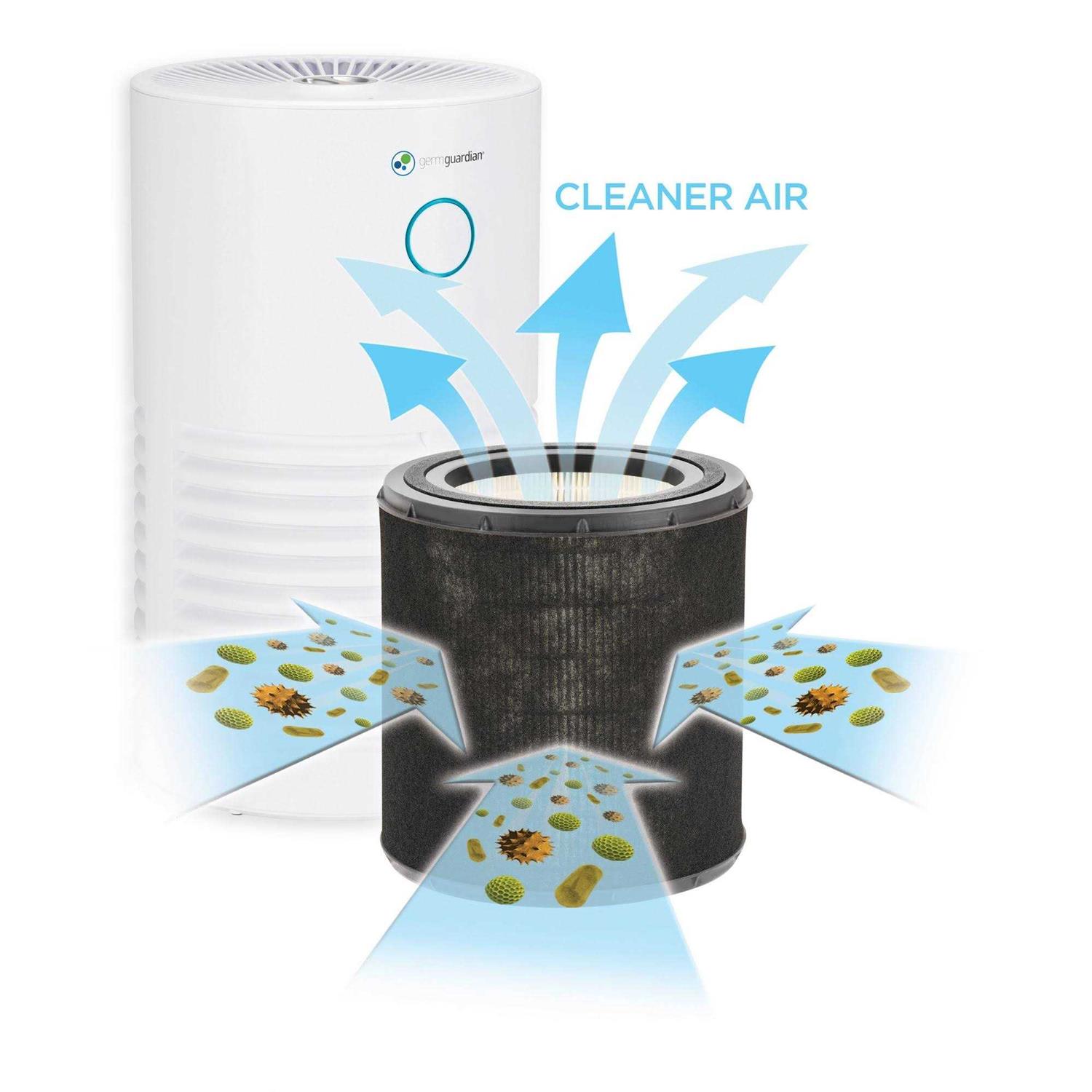 Say adios to sneezing and sniffles with a Germ Guardian AC4711W HEPA Filter Air Purifier. Ideal for medium-sized rooms up to 150 square feet, this 360-degree air purifier has a HEPA filter that’s perfect for allergy sufferers—it captures 99.97% of dust and allergens! In addition, the charcoal filter captures unpleasant odors from pets, smoking and cooking. This purifier also includes a UV-C control designed to kill airborne viruses, as well as a filter-change indicator. Choose from three speeds, including a super-quiet, low speed.