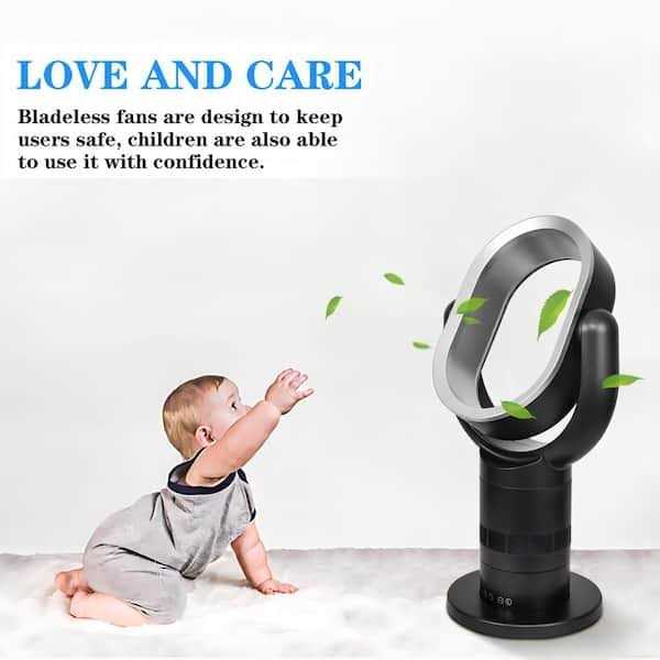 Experience a safer and more comfortable daily living with our stylish and modern design of leafless fan. With a low noise level below 60 Hz, you can enjoy 10 different air flow speed settings, a 10-hour timer, 3 modes, and a one-click maximum wind power feature. Thanks to the 3D air flow, you’ll receive the most comfortable breeze. This 24 in. fan is easy to install and clean. Perfect for your home improvement needs. Color: black.