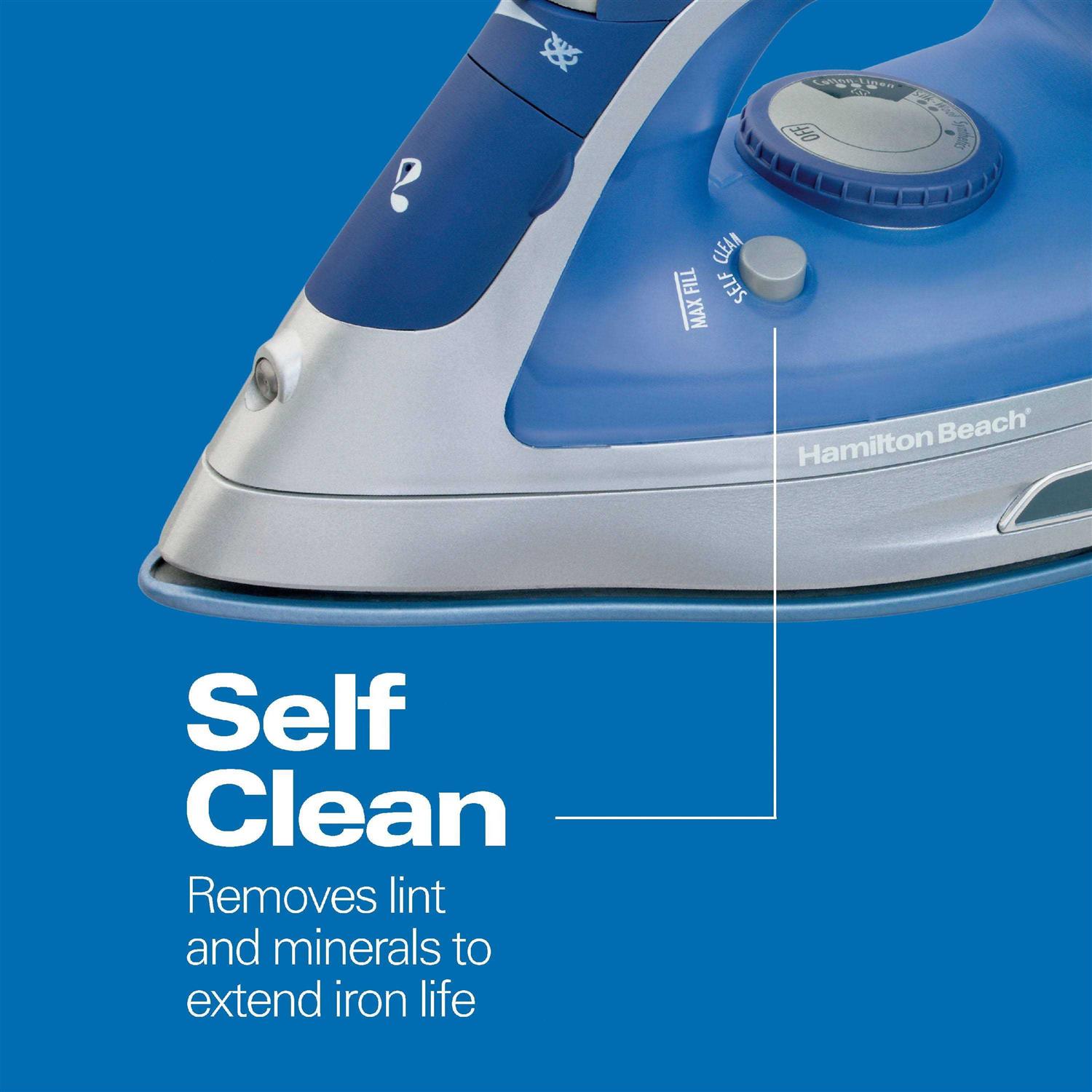 The Hamilton Beach Durathon Iron with non-stick soleplate delivers powerful steam performance, eliminating wrinkles fast whether you’re ironing a shirt for the office or putting the final touch on a creative project. Adjustable steam lets you choose the right steam level for every fabric including synthetics. The durable soleplate is wear-resistant and offers a smooth glide for fast ironing, making this household chore more pleasant. Keep the steam vents clear of any buildup by simply pressing the self-clean button. Anti-drip feature keeps water from leaking onto clothes when iron is on a low heat setting. Don’t want to take out the bulky ironing board? The convenient vertical steam feature allows you to remove wrinkles from clothes or draperies directly on the hanger. For peace of mind, the 3-way auto shut off automatically turns the iron off after 15 minutes if left in the upright position or after 30 seconds if left on its soleplate or on its side.
