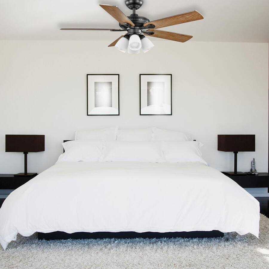 Burgess Smart Ceiling Fan from Hampton Bay is the perfect way to add a ceiling fan to your smart home ecosystem. This fan offers a variety of control options: remote control (included), control via your smart device (phone or tablet) with the HubSpace App or voice control with Alexa or Google Assistant. The traditional style combines with the latest technology to provide a variety of control options. The matte black finish is combined with 5 reversible blades in Cameron oak and dark walnut finishes to easily blend with your interior decor. The dimmable 4-light light kit with frosted white glass shades offers ample illumination using the included 9.5-Watt LED bulbs. The 4-speed motor provides ample airflow, quiet operation and reverse function for year-round comfort. The remote offers convenient operation of the fan’s 4 speeds, light (on/off/dimming), a timer function and comfort breeze mode that randomly changes the speeds to create an organic breeze effect. A wall cradle is included to store the remote when not in use.