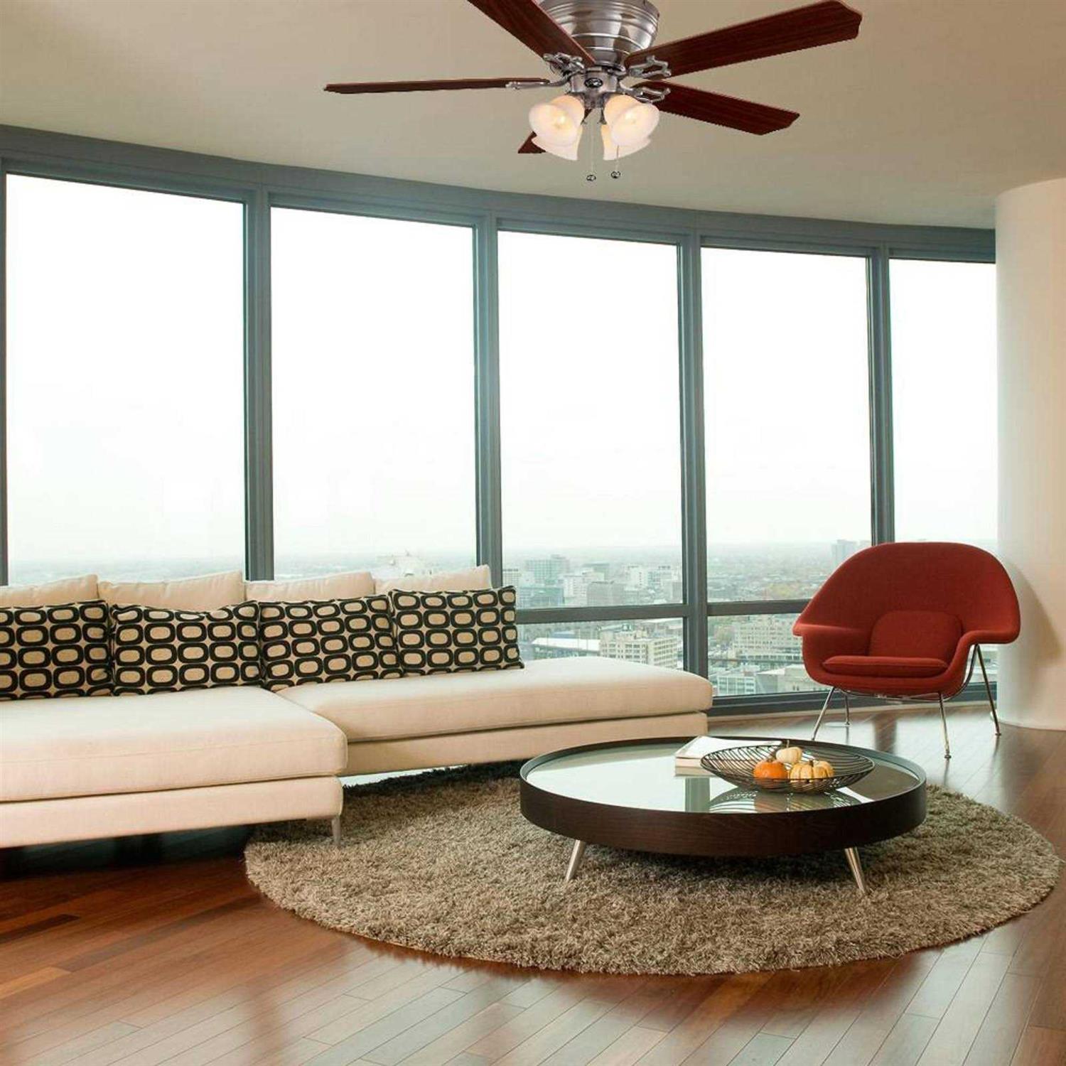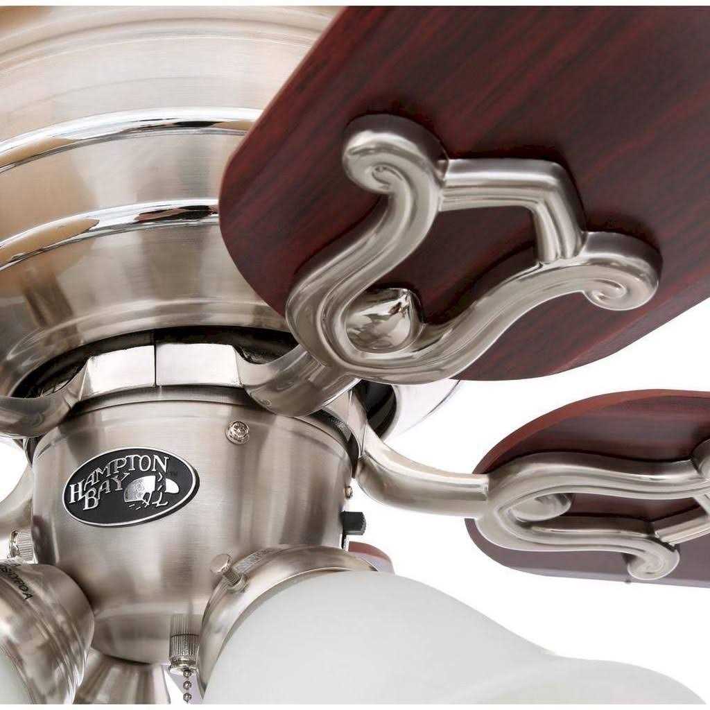 With its handsome brushed nickel finish, 4-light kit with white linen glass shades, and 5-reversible rosewood/bleached cherry blades, the Carriage House ceiling fan adds traditional style to any room decor. The Carriage House also has a triple capacitor for quiet fan operation. Uses four 9.5-Watt LED bulbs (included).