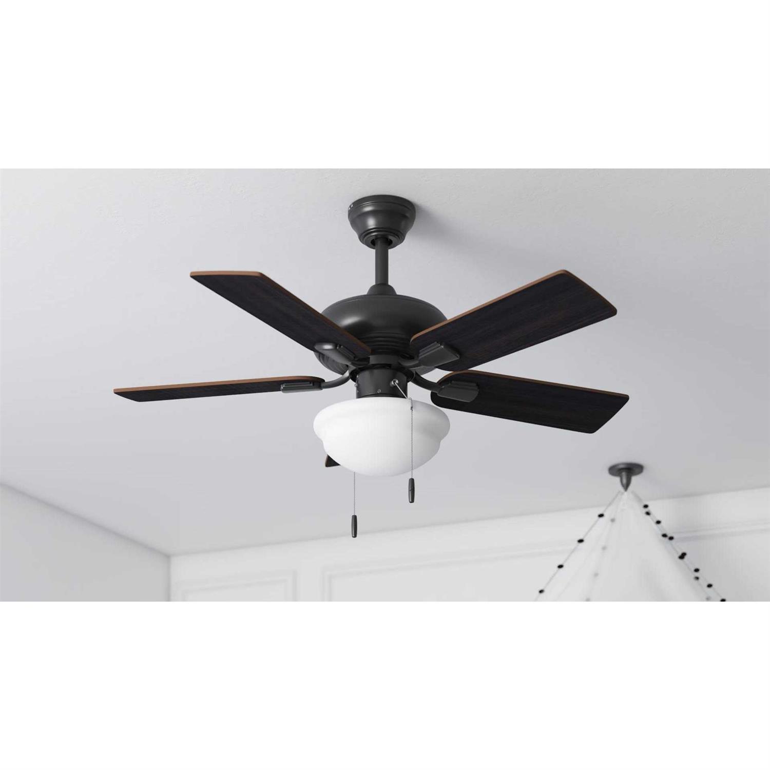 Bronze finish ceiling fan from the Caratuk River collection features 5 reversible blades in a cocoa/nutmeg finish, so it鈥檚 easy to change styles without purchasing new blades. Frosted marbleized glass, globe-style light kit includes one 6-watt LED bulb for energy-efficient illumination. 3 speed settings make it easy to customize your comfort level. Reverse air flow feature allows you to change the direction of the fan according to the season, for optimal airflow all year long. 4-in L downrod included for installation (angle mount capable). Great for casual or transitional style decor.