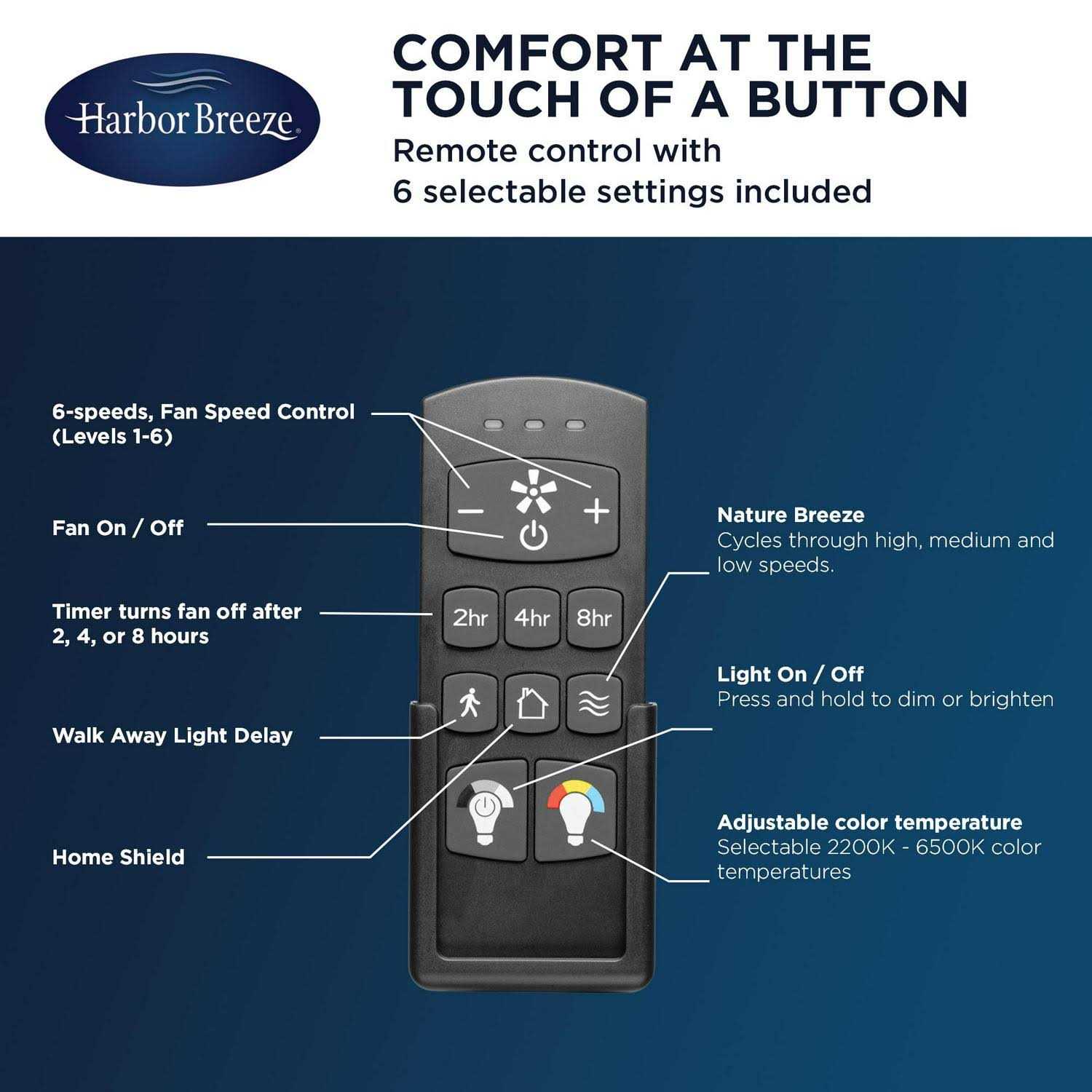 The Harbor Breeze Crestwell is a 52 inch ceiling fan with lights, perfect for your medium to large sized modern space(s). This black ceiling fan features an integrated LED light kit and 5 reversible blades in mocha and cocoa finishes. With its three speed, reversible motor, this remote-controlled fan will provide comforting air circulation year-round. Harbor Breeze ceiling fans provide style, function, and illumination to help make your house a home.