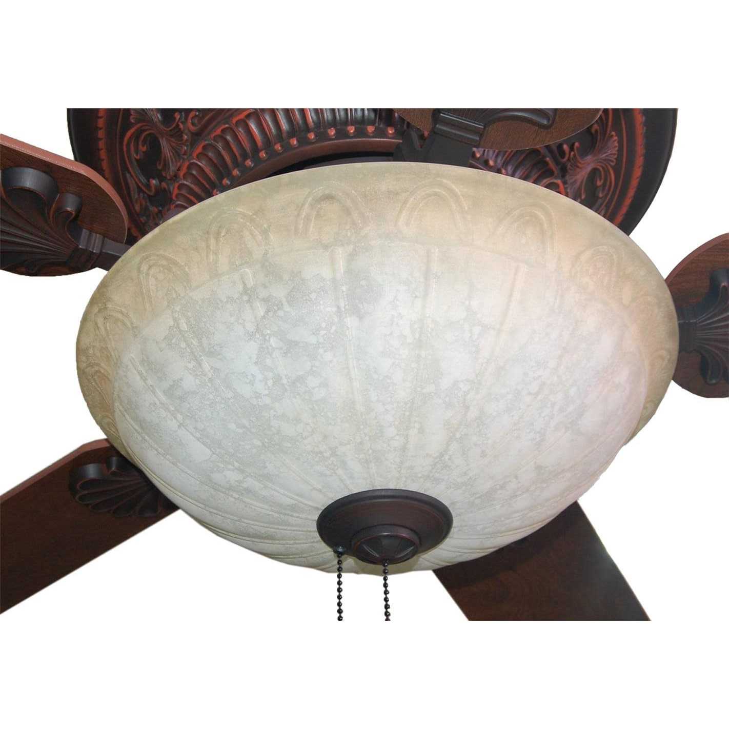 The 52-in Lynstead flush mount ceiling fan offers a hint old-world aesthetics with enhanced performance. The rich, oil-rubbed bronze finish is enhanced with beautiful cast flourishes on the motor housing. The fans design is complemented by the bronze highlights and stained glass bowl light kit. The Lynstead offers inviting and warm illumination using two medium base LED bulbs (included). The 3-speed reversible motor operates quietly to deliver optimal airflow. The Lynstead features 5 reversible blades in mink and cinnamon finishes to easily match your indoor dcor.