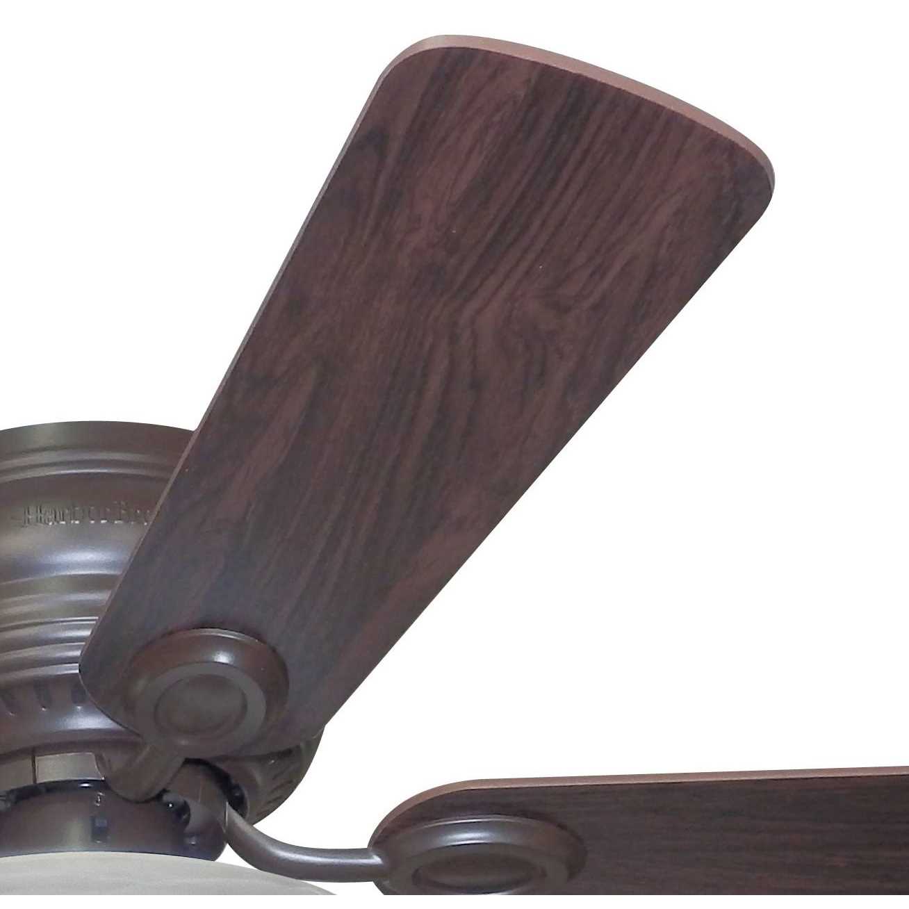 Bronze finish ceiling fan from the Mayfield collection features 5 reversible blades in a cherryteak finish. Alabaster glass light kit offers attractive energy-efficient illumination LED bulbs included. 44-in fan provides enough airflow for small rooms up to 100-sq ft. 3 speed settings make it easy to maintain your ideal comfort level. Pull chains make it easy to change fan speed and light settings. Reverse air flow feature allows you to change the direction of the fan according to the season. Flush mount installation is perfect for rooms with lower ceilings. Great for casual or transitional style decor.