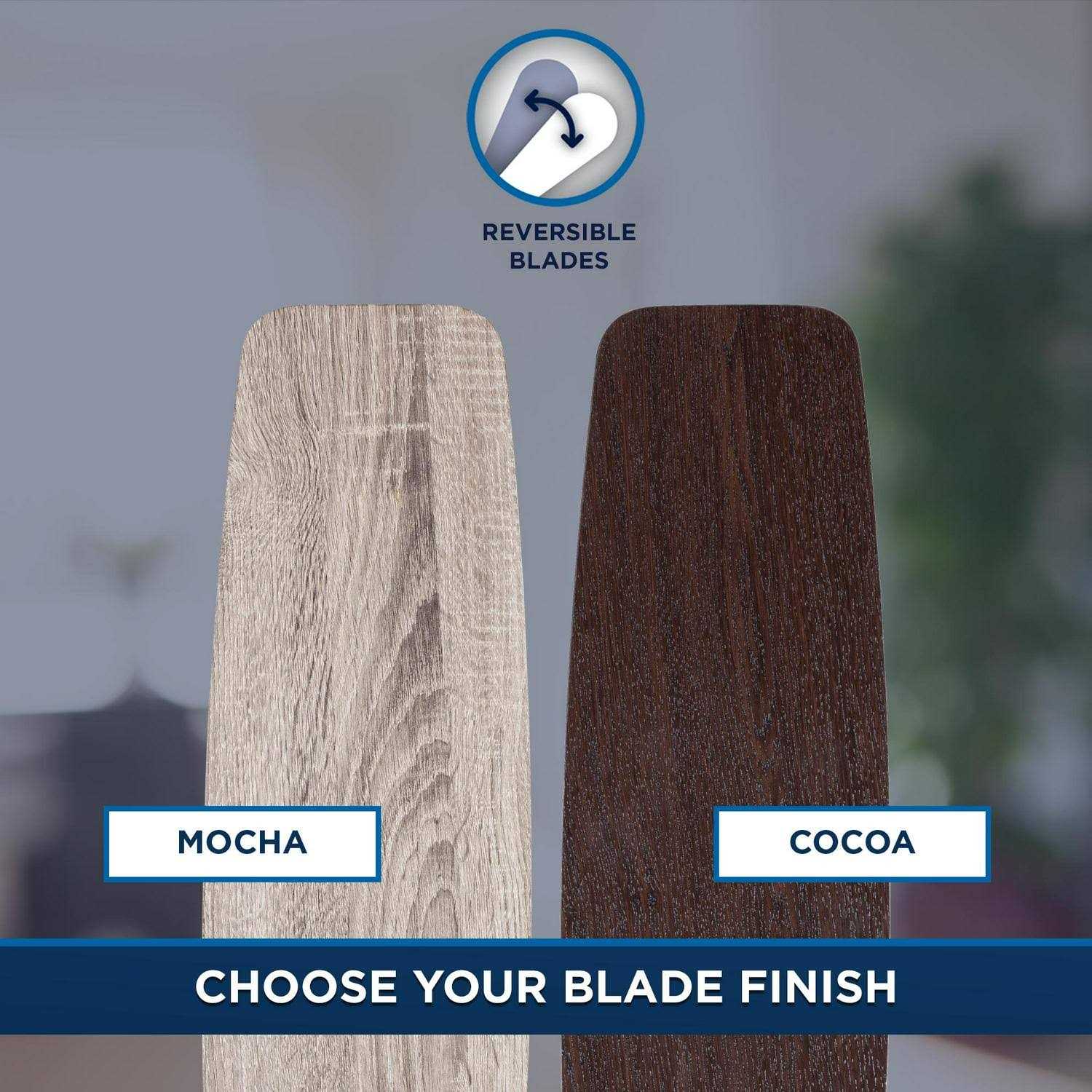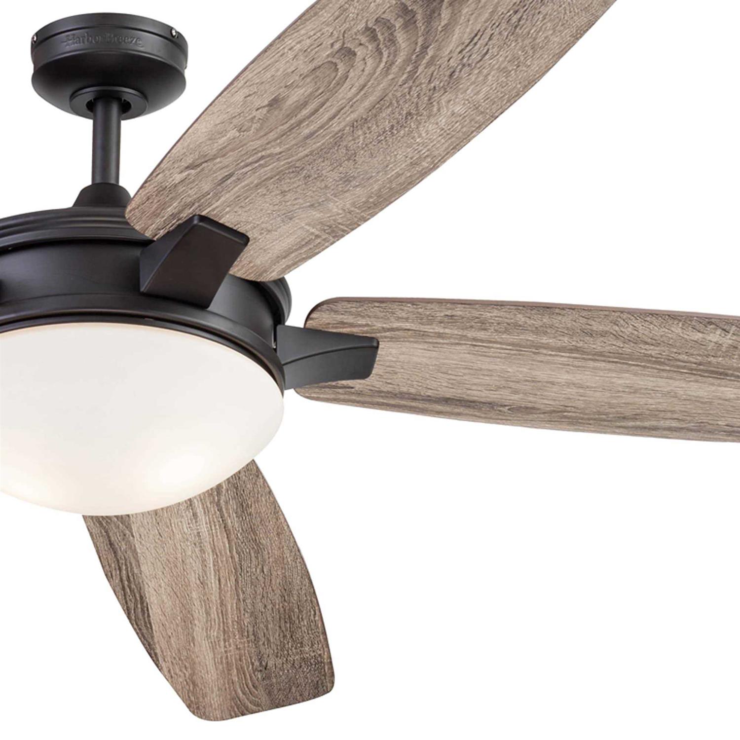 Showcasing a striking bronze finish and modern clean lined blade arms, the Harbor Breeze Oakham brings a modern farmhouse charm to your stylish spaces. With an impressive blade span of 70 inches, this modern ceiling fan is perfect for spaces 20 ft. x 20 ft. or larger such as great rooms, master suites or play rooms. This fan can be hung by the standard downrod mount( 6? downrod included) for flat ceilings or on angled ceilings (angle bracket for angles greater than 17 degrees sold separately). This ceiling fan comes expertly designed with reversible blades with a rough pine finish on one side and a chestnut finish on the other- the choice is yours.