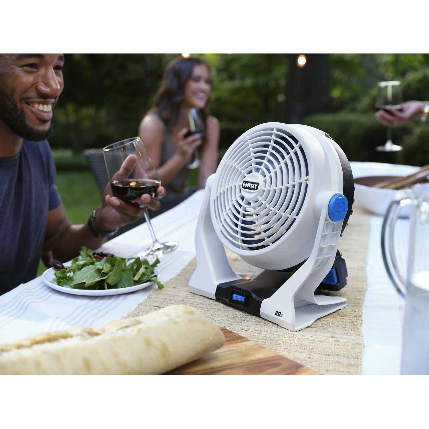 Beat the heat with the HART 20V 2-Speed Cordless Fan! Put down the extension cord and indulge in the convenience of the HART 20V line up of cordless tools that power your lifestyle! This ultra-portable fan lets you experience superior cooling anywhere you go! Whether youre cheering on your favorite team from the stands or staying cool in the garage, you can experience fade-free cooling power thanks to HARTs 20V lithium-ion battery technology that spans over our ever-growing lineup of 20V power tools! The integrated handle enhances portability for those on the go while the screw mounting holes allow for secure attachment for those looking to provide cool air circulation to their workshop or DIY space. The pivoting head ensures that no matter where the fan sits it will provide optimal air flow in any direction. Keep cool for up to 6 hours with a 1.5Ah battery and up to 18 hours when you upgrade to the HART 20V 4.0Ah Lithium-ion battery. This fan provides efficiency of the 7.5 blade span and 2-Speed fan control.
