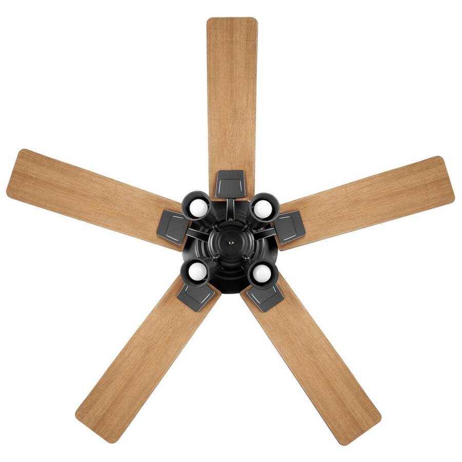 This transitional style 52 in. Matteo ceiling fan from Home Decorators Collection offers ample light output and quiet performance to enhance your indoor living spaces. The rich matte black finish is paired with 5 reversible blades in espresso stand oak and natural oak finishes to easily blend with your existing decor. The 4-light light kit uses four 6.5-Watt standard base LED bulbs and the fan’s 3 speeds are easily controlled via the included pull chains. The Matteo fan features a powerful 3-speed reversible motor for year-round comfort.