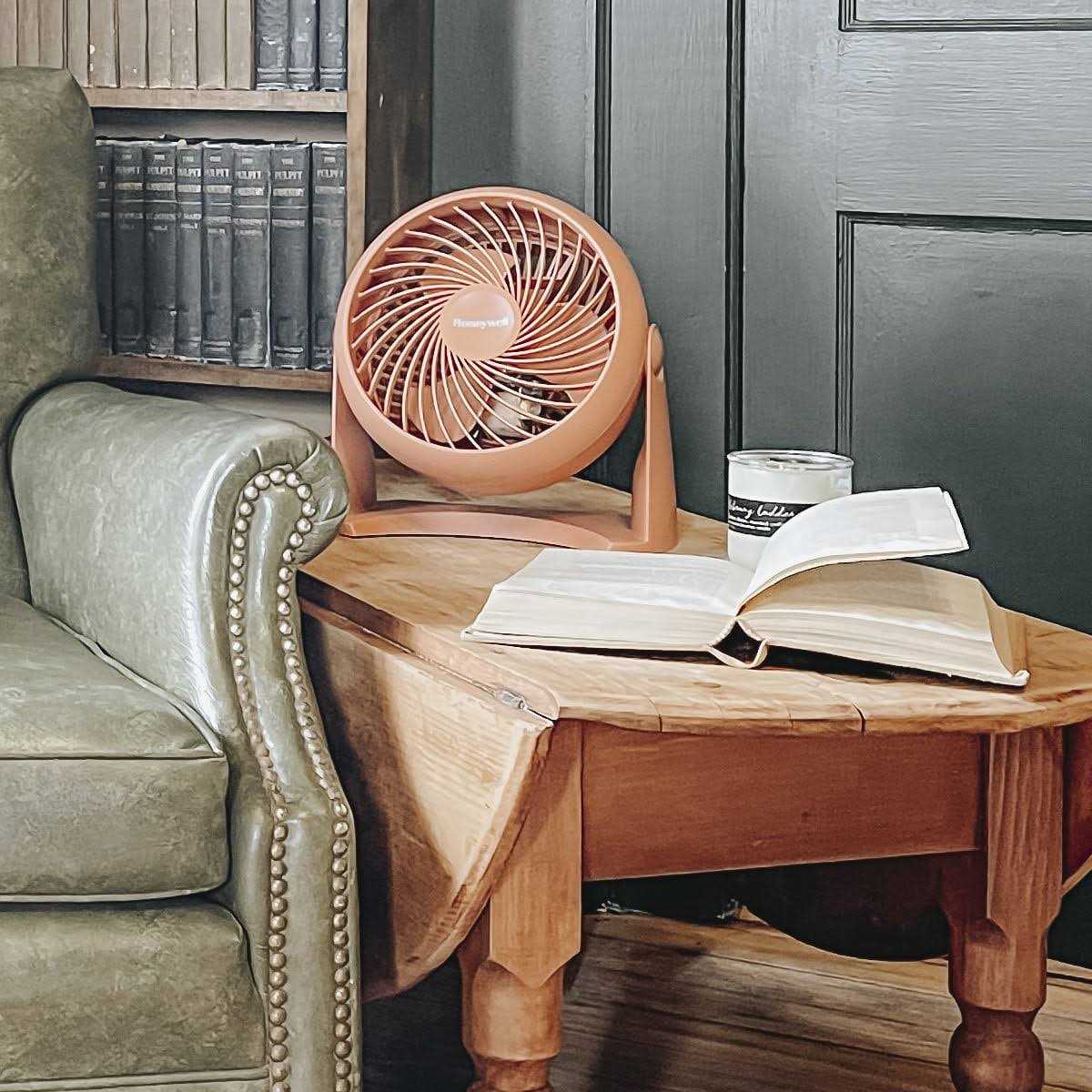Keep the room comfortable with the Honeywell Table Air Circulator Fan. It’s built with an adjustable fan head that can pivot up to 90 degrees – this makes it easy to control the direction of the airflow. It features three different speeds to choose from to make it easier to find the right level of cooling. This fan comes in a black color that gives it a sleek, modern look. It runs up to 25 percent quieter than most competing brands. Use the black table fan to keep cool at home or the office and stay focused on the important things. It works for both personal and directional cooling and can be felt from over 27′ away. The fan can be mounted on a wall with ease for greater convenience.