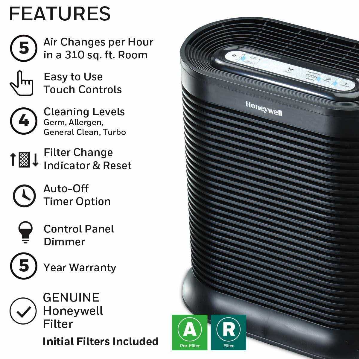The Honeywell True HEPA Allergen Remover is sleek, energy efficient and effective. Its True HEPA filter helps to capture up to 99.9% of airborne allergens, such as mold spores, smoke, dust, pollen, and bacteria from the air that passes through the filter. It features an automatic shut-off timer and 4 cleaning levels, including germ, allergen, and turbo cleaning power options.
