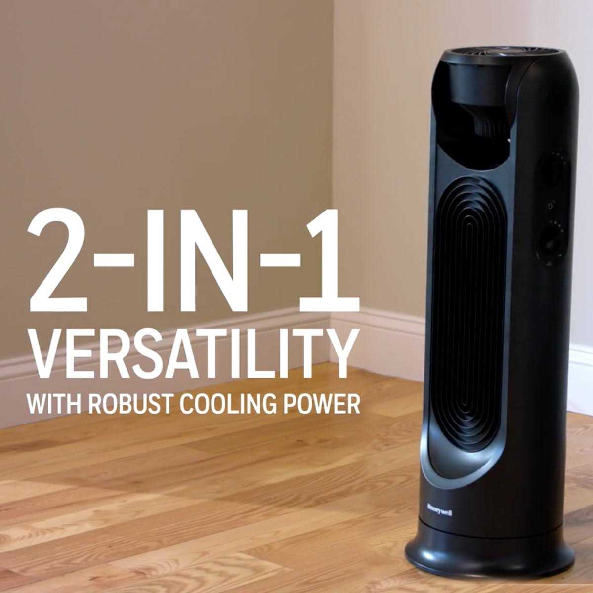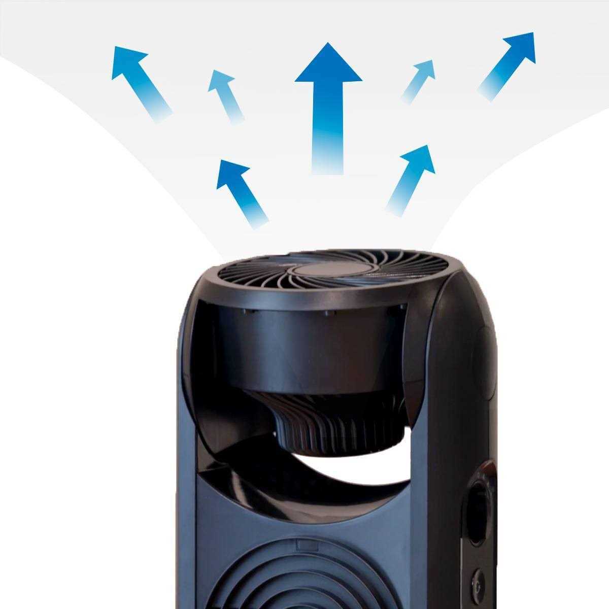 Turbo Force High Velocity Circulator This unique fan combination has the high-velocity air output of a tower fan and the versatility of the 90 degree pivoting top fan, allowing for room air circulation. 2 Independently Controlled Fans with 3 Speeds each for a combined 15 Comfort Settings Unique Cross-Flow design Delivers air movement 40 feet away 91 (Based on internal testing – test # 18-070) 32″ Tower Fan Oscillates & Head pivots 90o for powerful air circulation Feel the big cooling blast of our 2-in-1 Turbo Force Tower Fan from 40 feet away! This unique fan combination has the high-velocity air output of a tower fan and the versatility of the 90 degree pivoting top fan, allowing for room air circulation. The Turbo Tower offers two independently controlled fans with 3 speed settings each. The aerodynamic fan blades provide quiet, powerful whole-room cooling while fitting stylishly into your home’s tight spaces. With a sturdy oscillating base and energy saving benefits, this 32-inch tower fan is designed with your family’s comfort in mind.