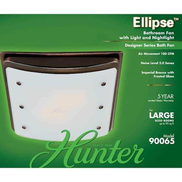 Hunter 90065z Ellipse Decorative Bathroom Ventilation Exhaust Fan with Light and Night-Light
