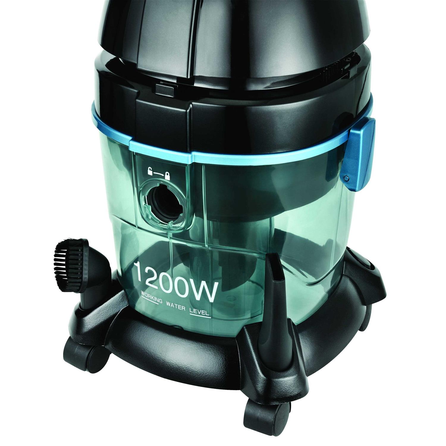 The Water Filtration Vacuum Cleaner has a built-in water tank that traps dust and debris — leaving air clean and fresh. Works great for wet or dry vacuuming, with no dusty bags or canisters to empty. When you’re done cleaning, simply dump the dirty water down the drain. Features a powerful 1200 Watt motor, 4 caster wheels, on-board storage and telescoping metal tube. Includes heavy-duty 2-in-1 floor brush (for carpets and bare floors), dust tool and crevice tool.