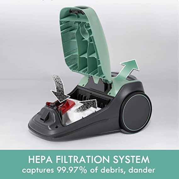 About this Kenmore BC2005: Keep your home clean with the Kenmore 400 Series bagged canister vacuum. A handy HEPA filtration unit removes nearly all dust and allergens, so you and your family can experience cleaner air. A multi-surface design handles carpet, hardwood, and linoleum with the same powerful capability. The automatic cord rewind helps prevent tripping or tangling. Powerful HEPA filtration with an Allergen-Seal system removes virtually all dust, pollen & dander. Seamlessly transition between cleaning carpet, hardwood, linoleum, or a combination of each A powerful motor offers serious cleaning capability. Gives you the extra reach you need without the added burden on your back and arms.
