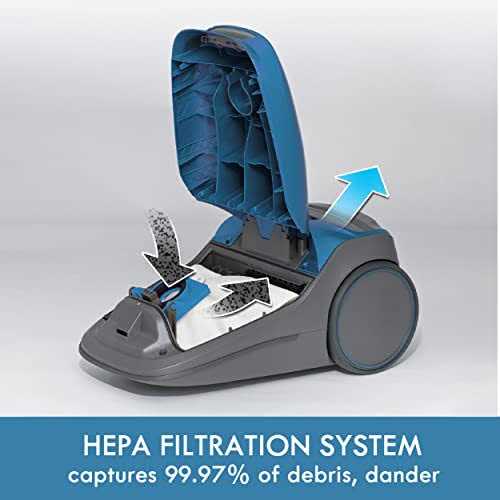 A handy HEPA filtration unit removes nearly all dust and allergens, so you and your family can experience cleaner air. A multi-surface design handles carpet, hardwood, and linoleum with the same powerful capability. The automatic cord rewind helps prevent tripping or tangling. An Indispensable Cleaning Companion: Powerful HEPA filtration with an Allergen Seal system removes virtually all dust, pollen & dander. Seamlessly transition between cleaning carpet, hardwood, linoleum, or a combination of each. A powerful motor offers serious cleaning capability. Gives you the extra reach you need without the added burden on your back and arms.