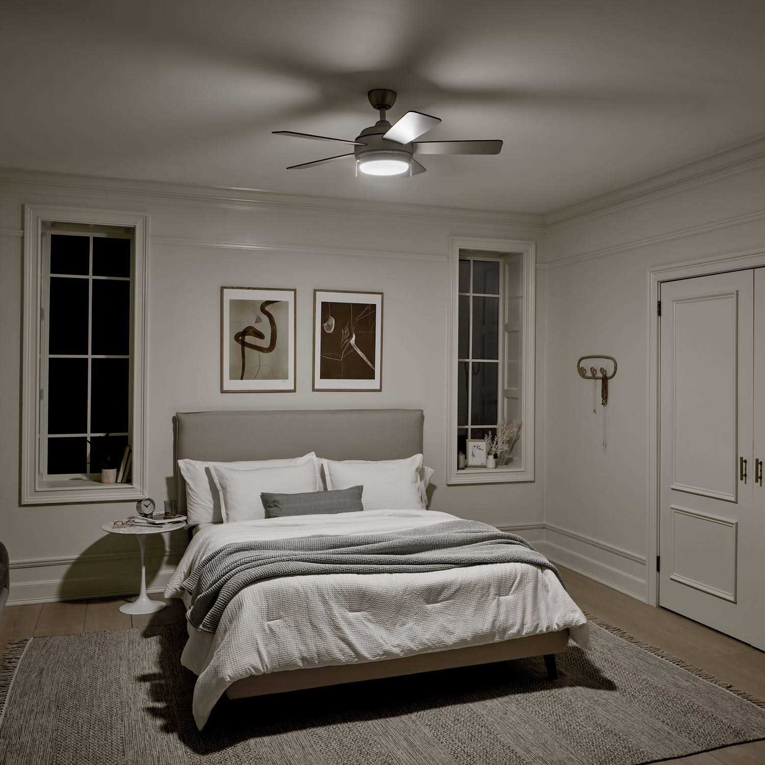 Offers a classic design that works well with traditional and modern décor. Also includes a 17W dimmable integrated LED light, plus 78″ lead wire for taller ceilings. 14″ pitch, includes a 4.5″ downrod of 1″ (O.D.). Works with ceilings up to 30 degree or 7/12 pitch. It comes with 78″ lead wire for taller ceilings. Provides ambient lighting, which provides overall illumination to the area. CSA UL Listed Dry. A dry location is an indoor area that is not normally subject to dampness. Air Performance: Airflow 3482 cu. ft./minute on high; Power Usage 47 Watts on high (excludes lights) and Airflow Efficiency 74 cu. ft./minute per Watt.