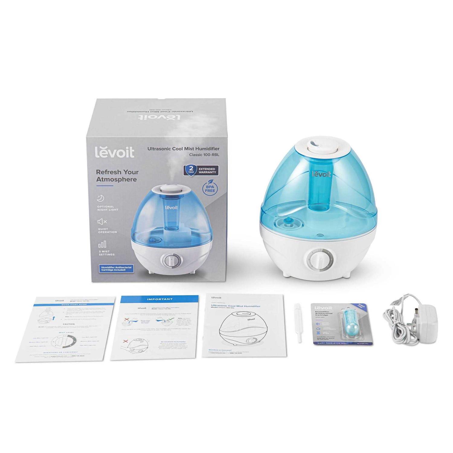 With its ultrasonic technology and a 0.60 gal / 2.3 L capacity, the Levoit Misty Ultrasonic Cool Mist Humidifier delivers humidity to bedrooms, offices, nurseries, and other mid-sized rooms for up to 24 hours. With an effective range of up to 280 sq ft / 25 sq m, it handily covers virtually any room in your house. Choose between 3 mist levels to find the perfect atmosphere for you. The near-silent noise levels and soothing night light help you sleep, while the mist provides relief from dry skin, allergies, and cold symptoms.