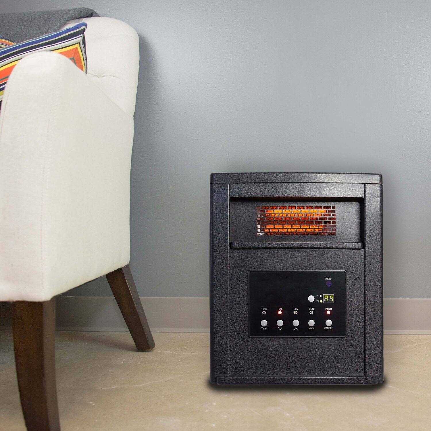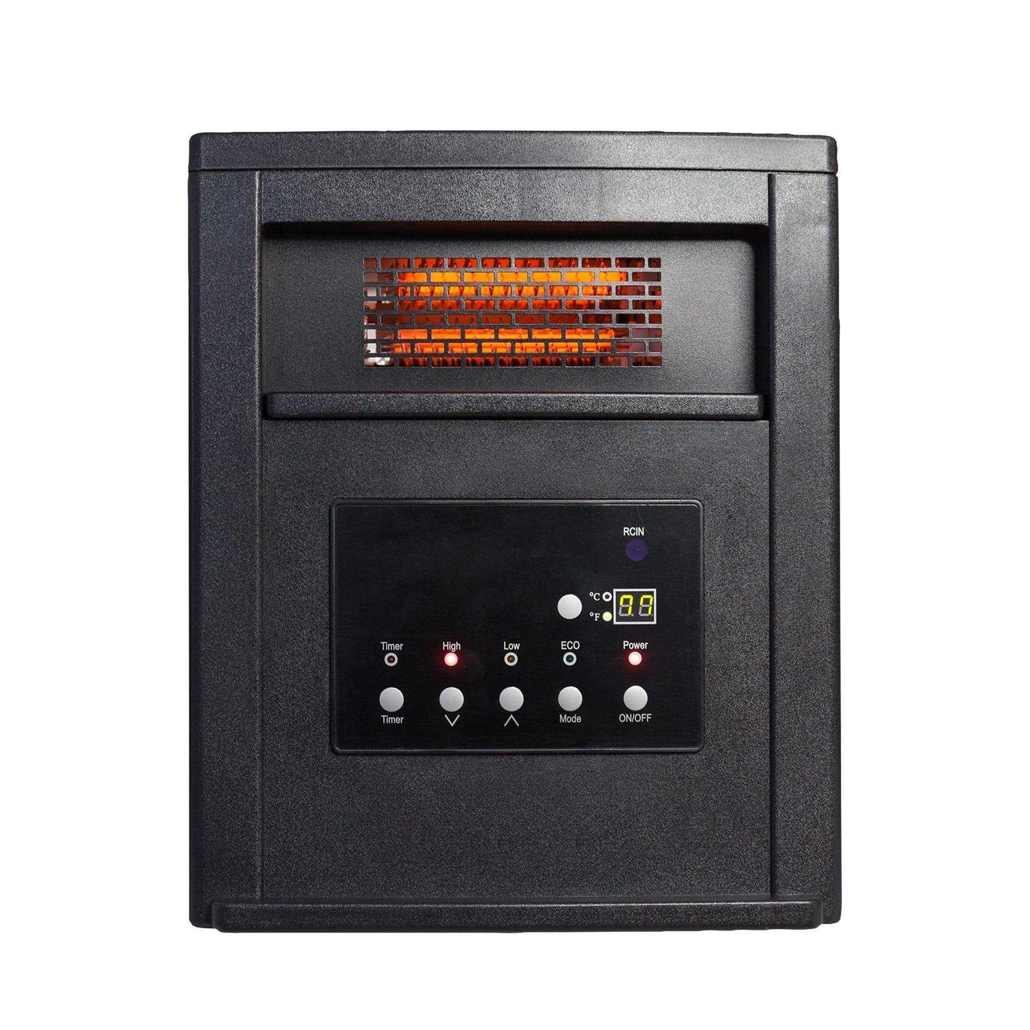 The Lifesmart Infrared Fireplace Heater brings the warmth and beauty of a fireplace anywhere in your home without needing to be installed. Using 6 quartz infrared elements to produce comfort and heat. Perfect for heating rooms in your home with its 3 heat settings 1000 watt/1500 watt and an ECO mode that maintains a constant 68 degrees. Safety features include tip-over protection, overheat safety switch, cool-touch exterior cabinet, and a child safety lock. The fireplace produces a beautiful and realistic dancing flame that can be operated with or without heat so you can enjoy the ambiance year-round. A quiet scroll fan helps circulates the heat. Remote control is also included to operate your fireplace from across the room (Requires 2 AAA batteries not included).