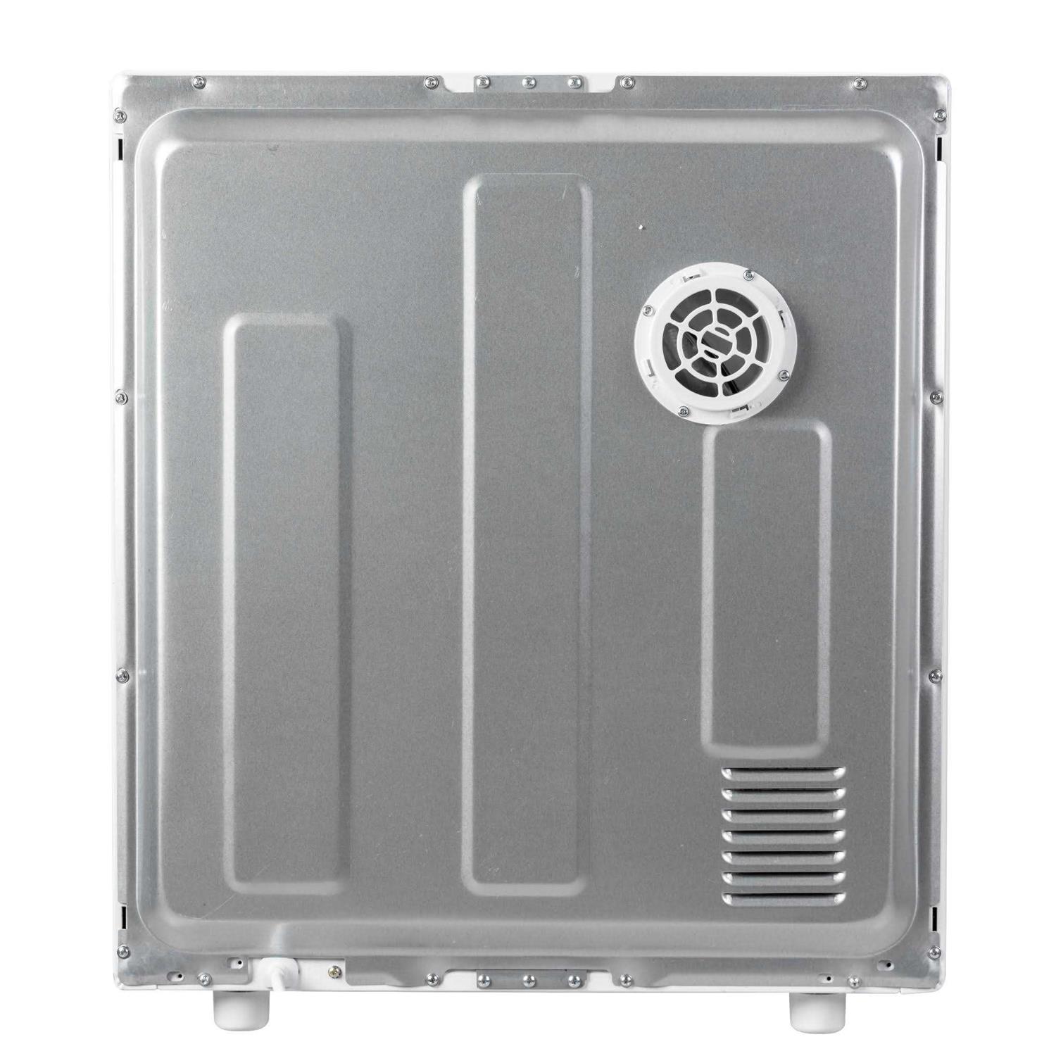 The Magic Chef 2.6 cu. ft. compact dryer features a stainless steel drum and is ideal for a tabletop or can be easily mounted on a wall. 10 amps, PTC heating element, easy push button controls. Includes cotton damp dry delicates and cool down cycles. Easy access lint filter. Rear exhaust vent. Cord length: 63″. Uses standard household outlet: 17″W x 231/2″D x 271/2″H. Weighs: 44 lbs.