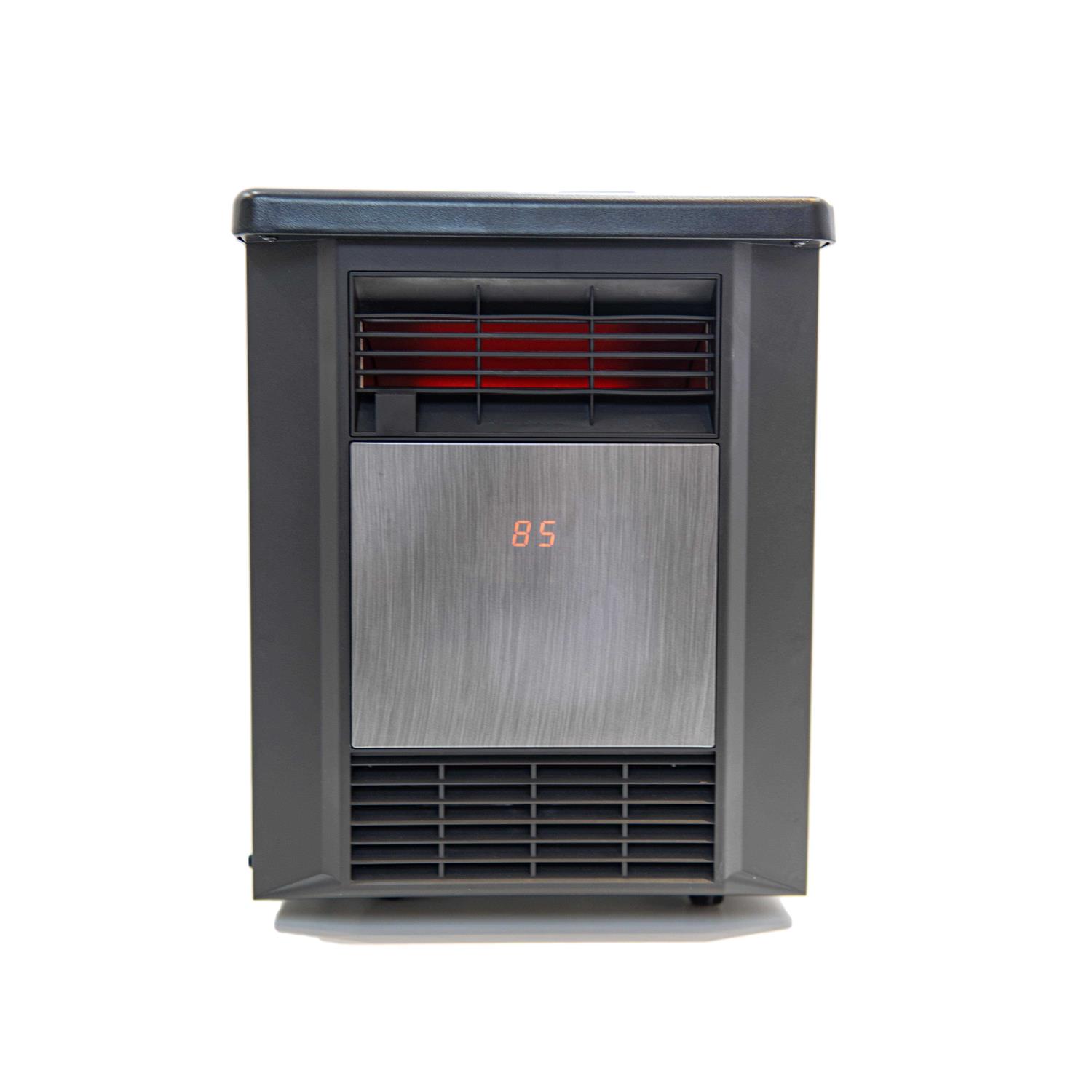 Mainstays 1500W Electric Infrared Cabinet Heater DF1911 is an excellent choice to use as a supplemental heating source during the cold weather months. It Provides Quick and Quiet Heat with 2 Heat Settings (1300/1500 watts). The lightweight of the heater allows for easy portability, Easily create a more comfortable environment in your garage, workshop or anywhere you need it with this portable heater. Equipped with safety tip-over switch and overheat auto-off, the heater is safe and reliable. The durable all-metal construction on the body of this portable utility heater is designed to stay cool, and it features an oversized carry handle for easy and comfortable transport. Cool-touch exterior cabinet; Overheat protection; 2 Heat+1 Fan settings; Programmable thermostat; 9-Hour timer; Caster wheels for easy movement